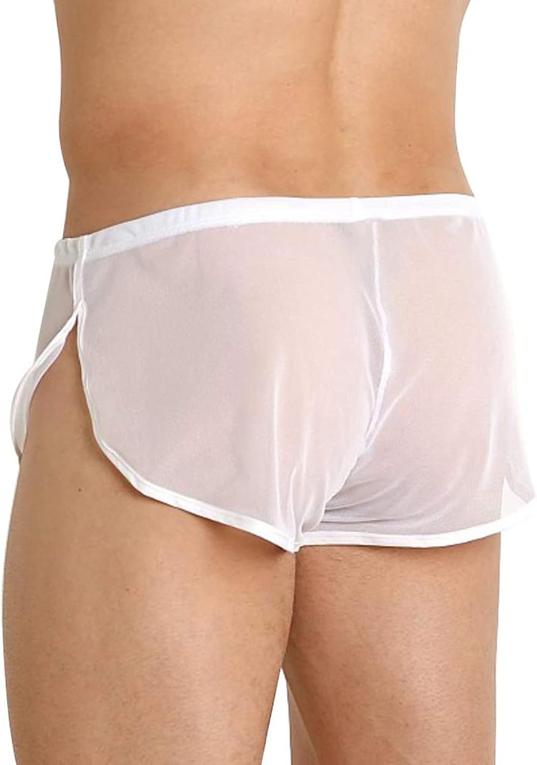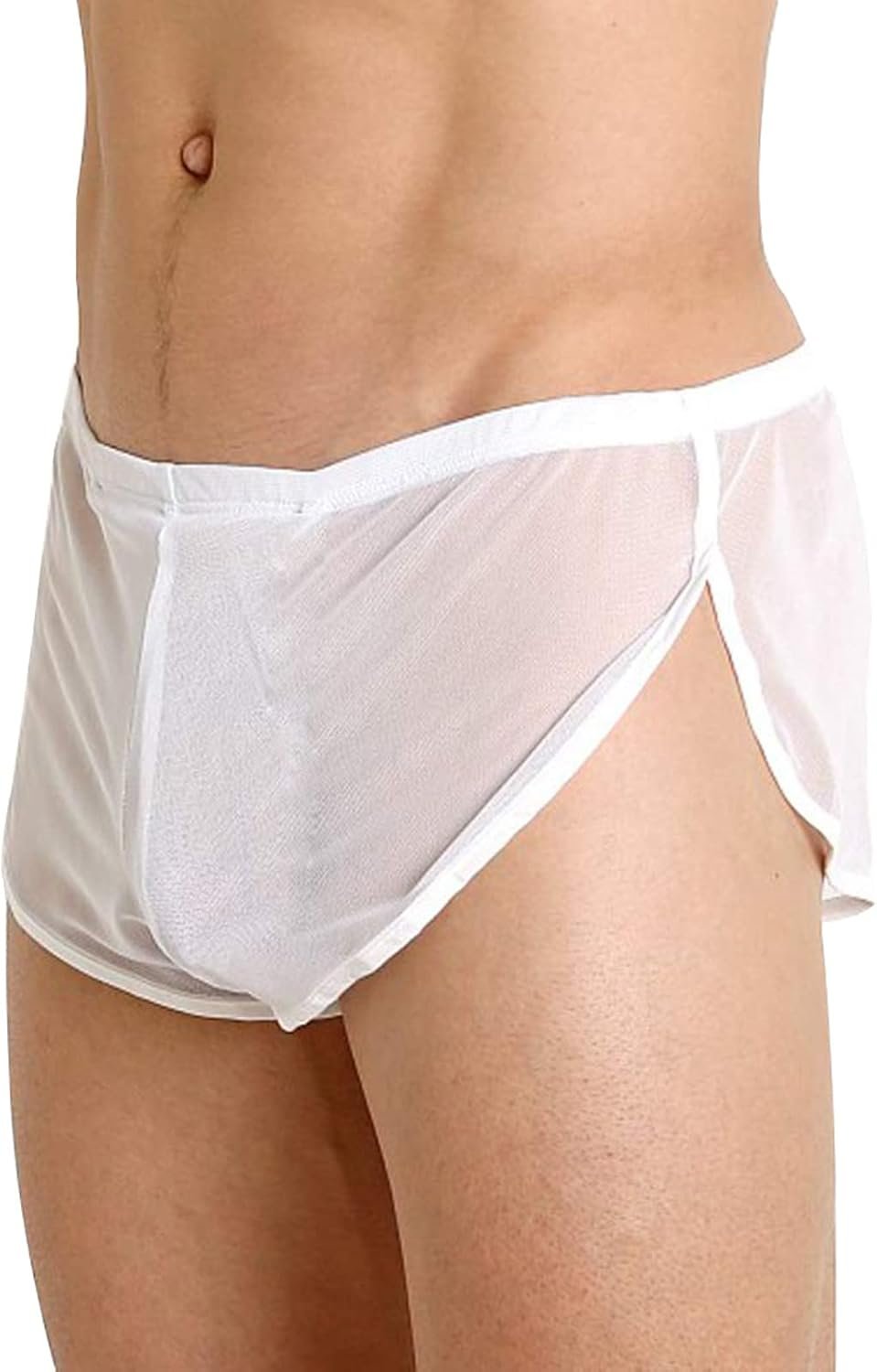 Mens Sexy Lingerie Underwear Mesh Breathable Underpants Mens Mesh Shorts See Through with Large Split