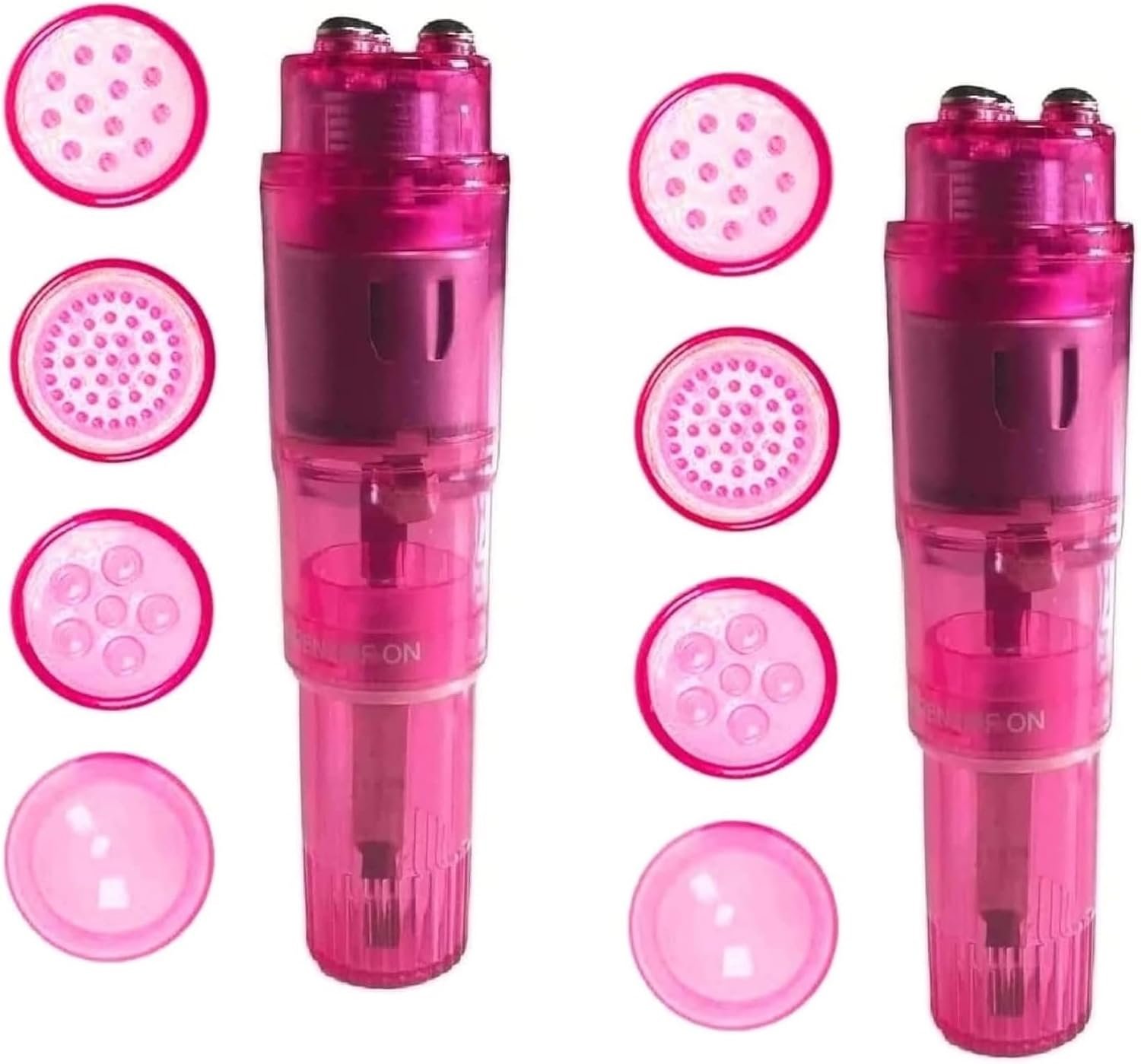 Mini Portable Small Vibrating Massage Body Tool 4 Heads Massager Pocket for Women Neck Shoulder Face Back Foot Muscles (2PK Pink)