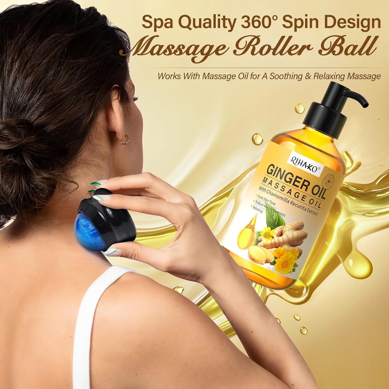 🎁【Great Choice For At-Home Spa】 No more expensive trips to the salon for massages. The RIHAKO Massage Oil Trio Bundle will make you feel like you’re at a spa while staying in the comfort of your own home! The unique 360-degree rotating design glides over your skin and smoothes out any knots or tension. Just add a few drops of massage oil and you’re ready for a soothing, relaxing massage.