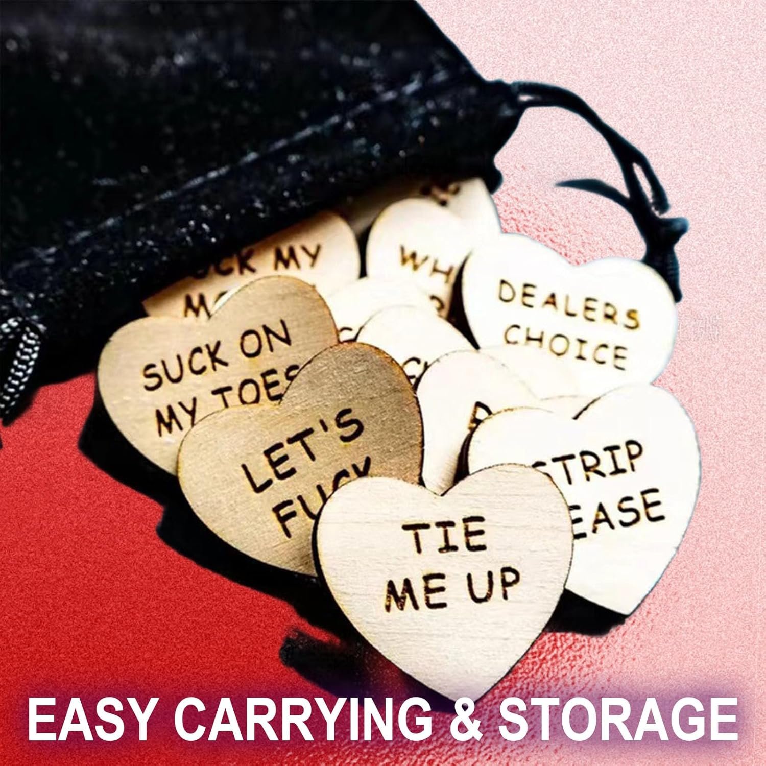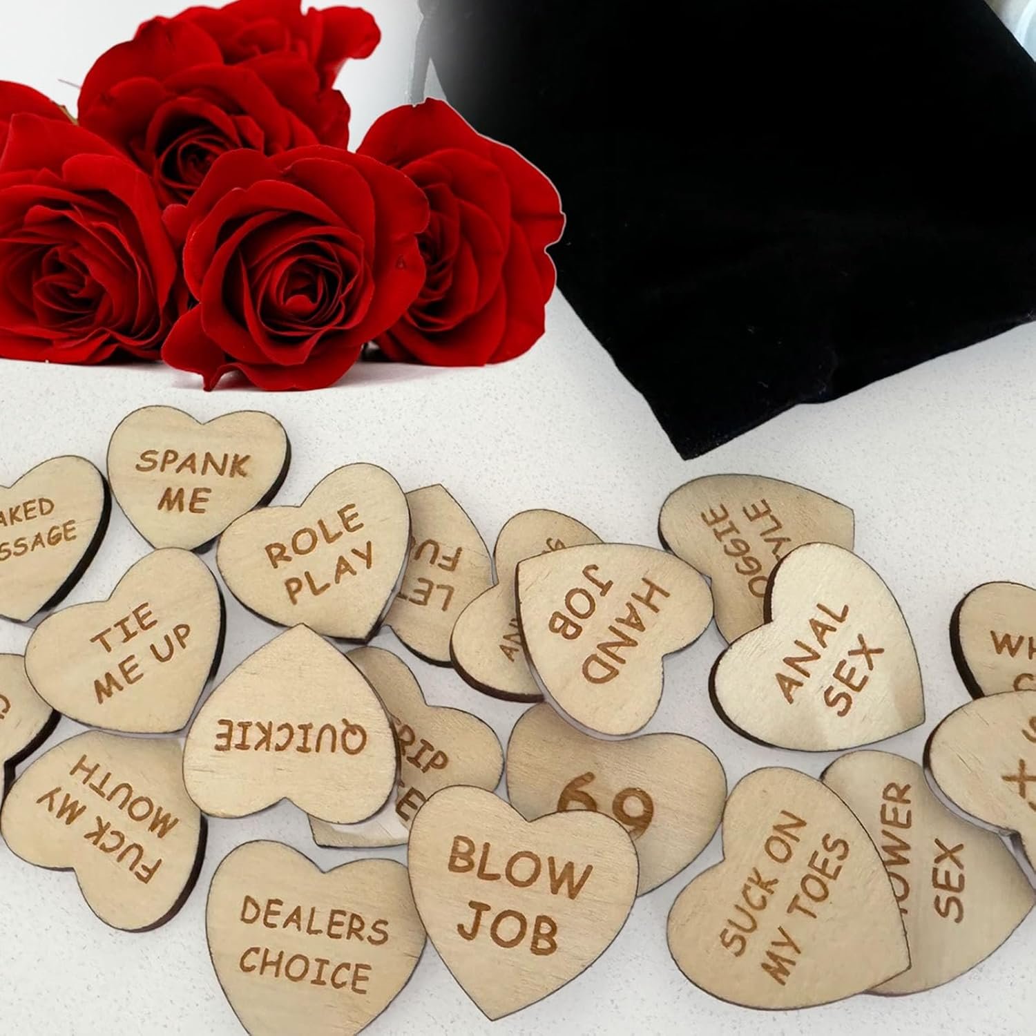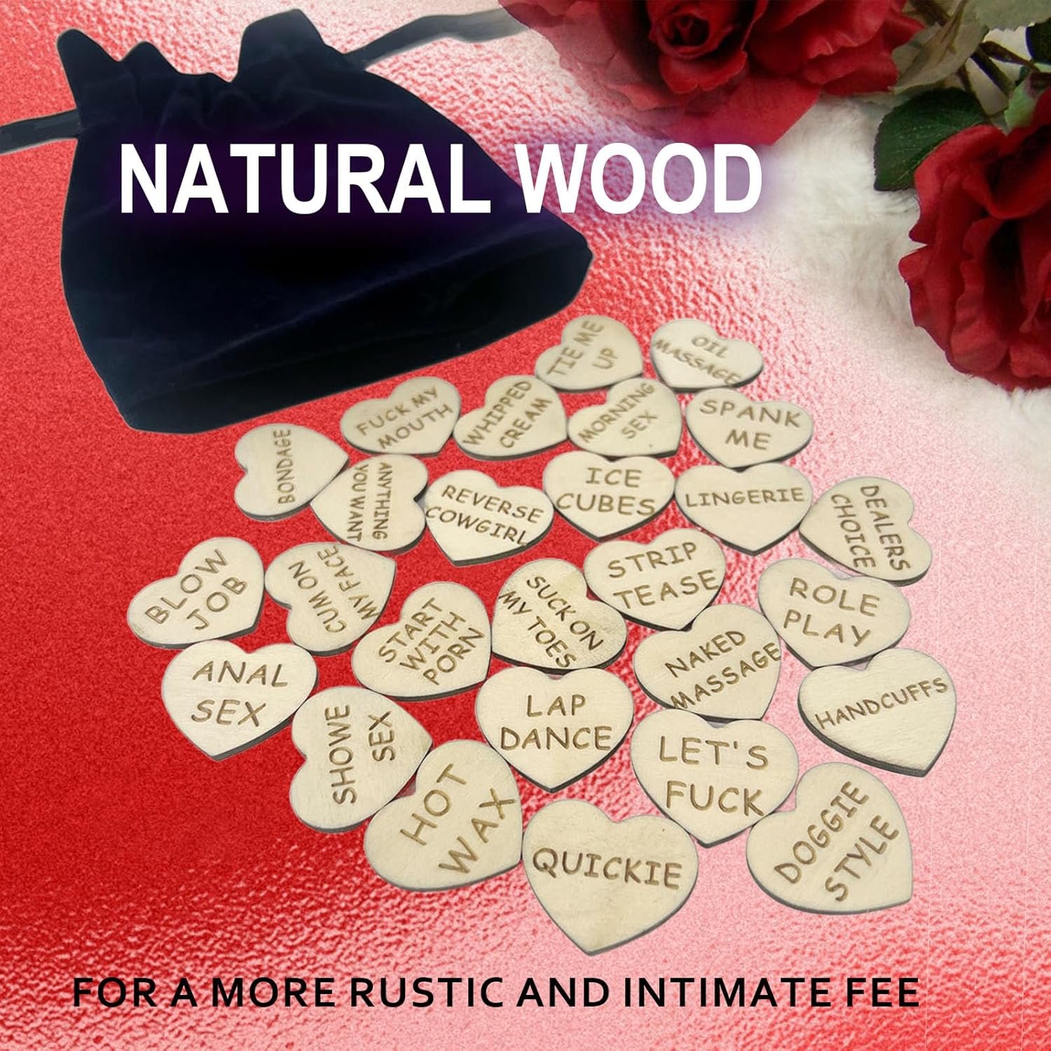 Heart Shaped & Size: Each set comes with laser-cut wood tokens, measuring 1.2″ (30mm) heart-shaped. They are designed for her to give to you as instructions or options for her/you to select and allow you to sexually explore and play with all your senses, try new positions, and test a little power play and much more.