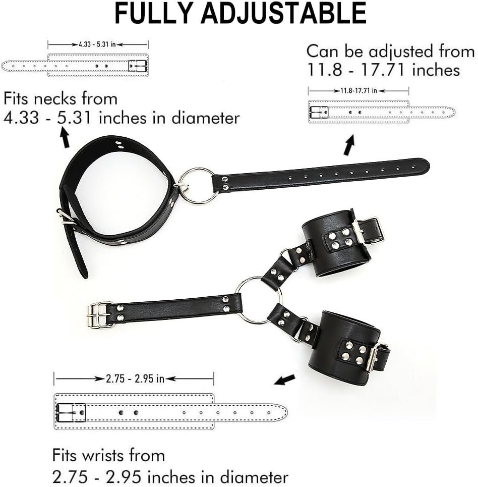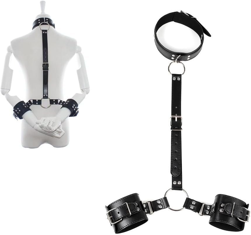 Neck to Wrist BDSM Bondage Restraints kit Beginner Behind Back Handcuffs Collar Adjustable Straps Handcuffs Sexy Restraints for Adults Couples Bed Game SM Sex Toys