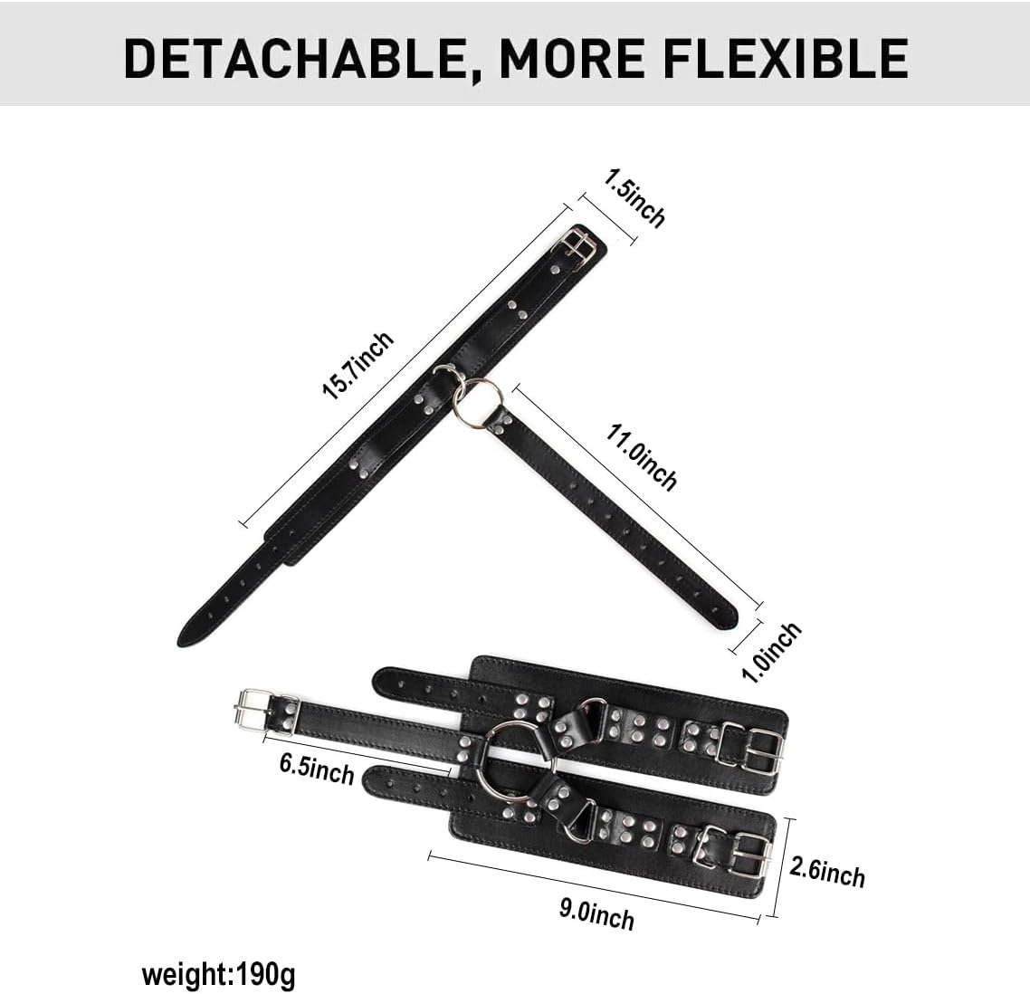 Adjustable Sex Straps – The collar, handcuffs, and connecting part of this restraints kit are all equipped with adjustable buckles for looseness and length, making it easy for you to achieve a variety of difficult positions in the SM gameplay, all within your control.