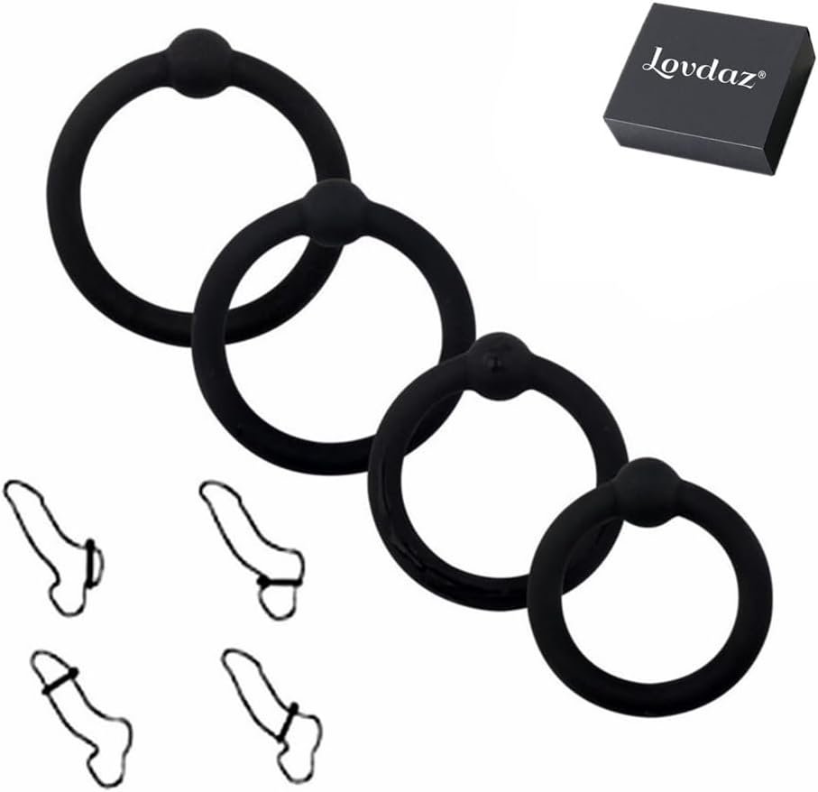 Penis Rings Set with 4 Different Sizes Cock Rings for Erection Enhancing, Long Lasting Stronger Adult Sex Toy, Soft Stretchy Silicone Cock Ring for Men Couple Sexual Pleasure Enhancing, Black