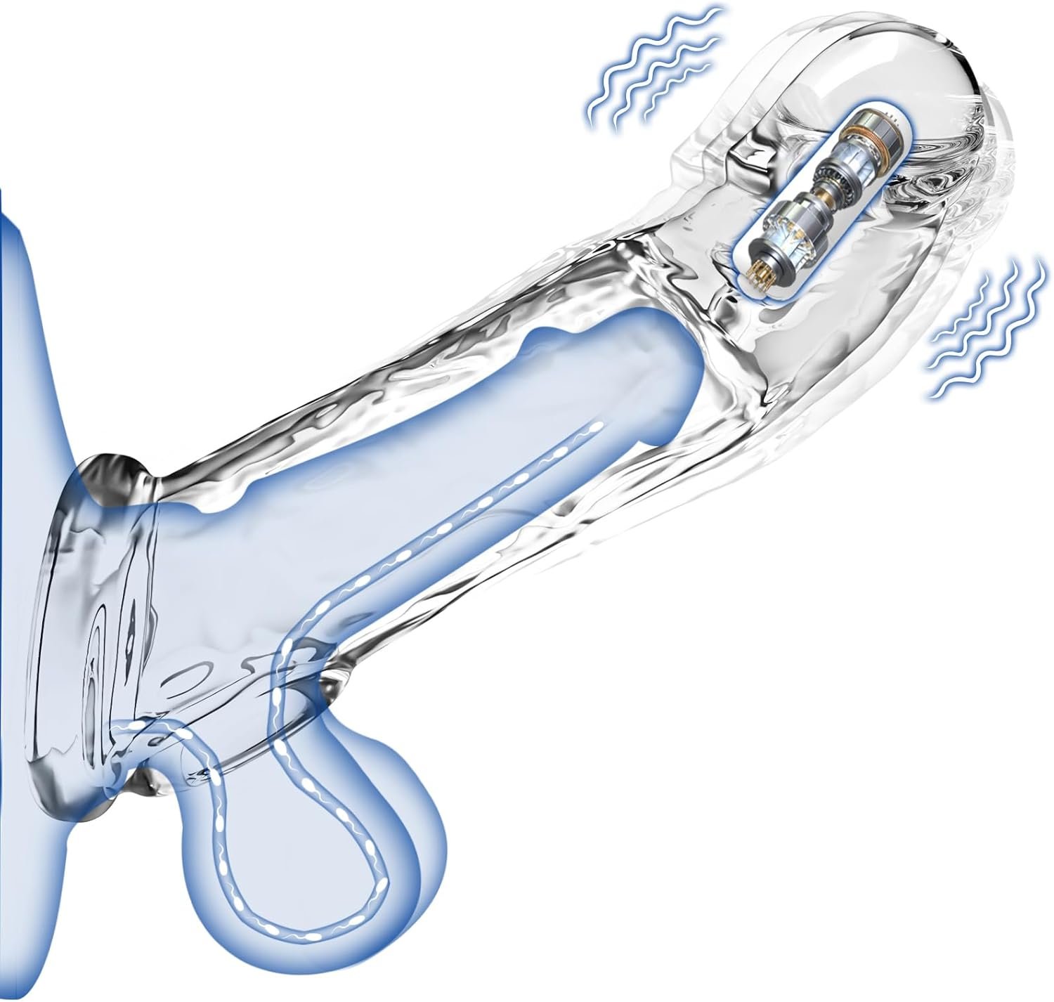 Penis Sleeve Vibrating Cock Ring, Male Vibrator Reusable 3″ Penis Extender Enlarger with Penis Ring Vibrator, Realistic Cock Sleeve Adult Sex Toy for Men Couples (Clear)