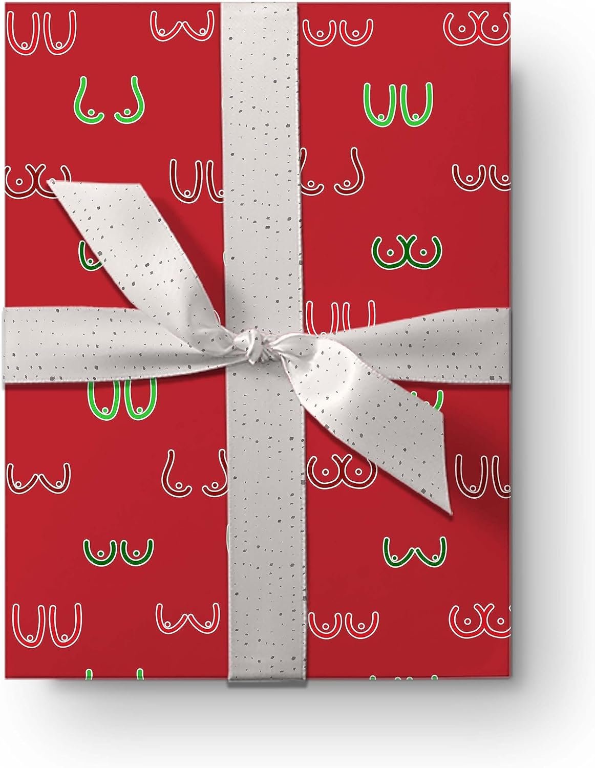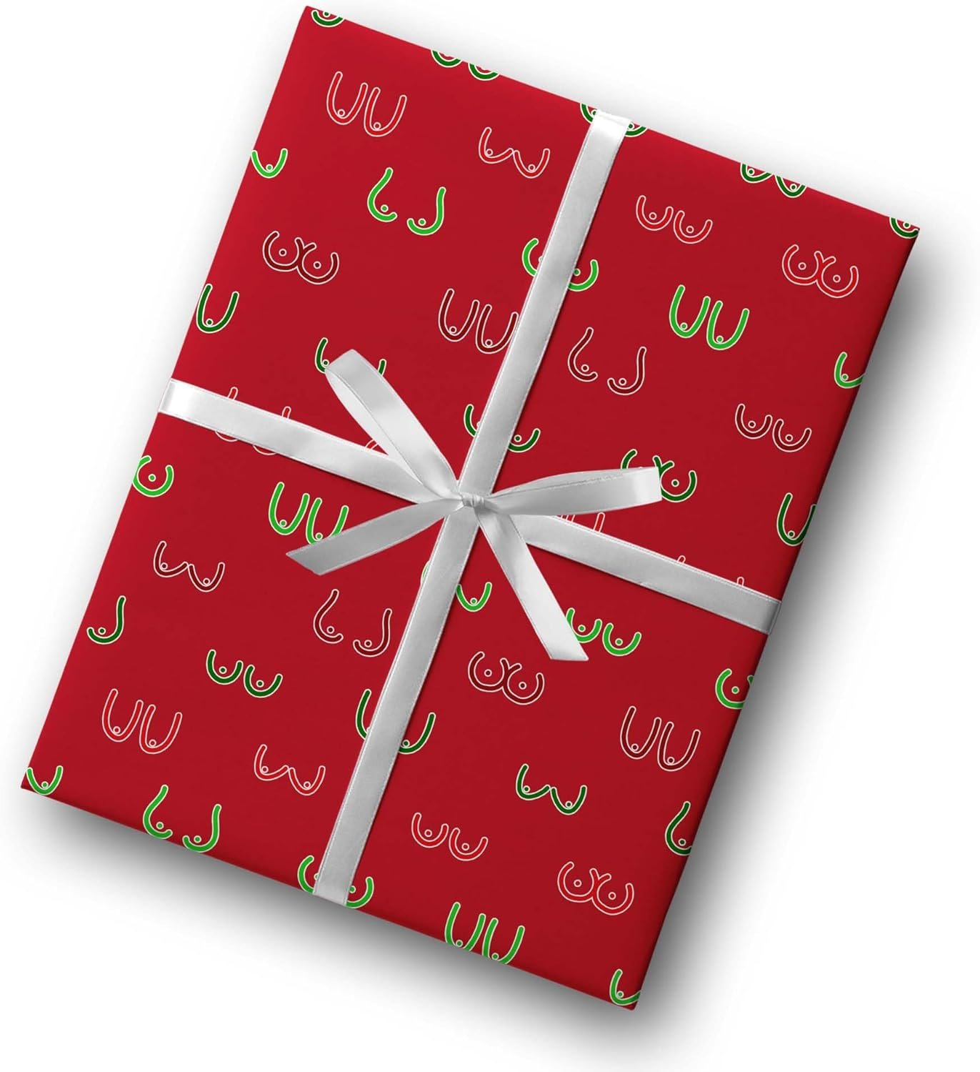 Red Colorful Boobs Wrapping Paper, NSFW Bachelorette Gift Wrap, Sexual Party Decor (One 20 inch x 30 inch sheet)