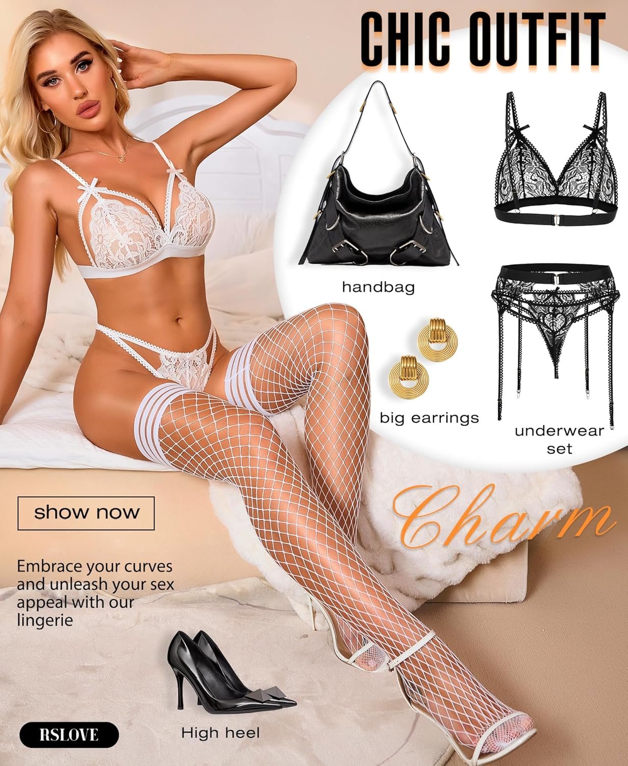 RSLOVE Fishnet Thigh High Stockings – Womens Fishnet Stockings Antiskid Silicone Stay Up Pantyhose Sexy Lingerie for Women