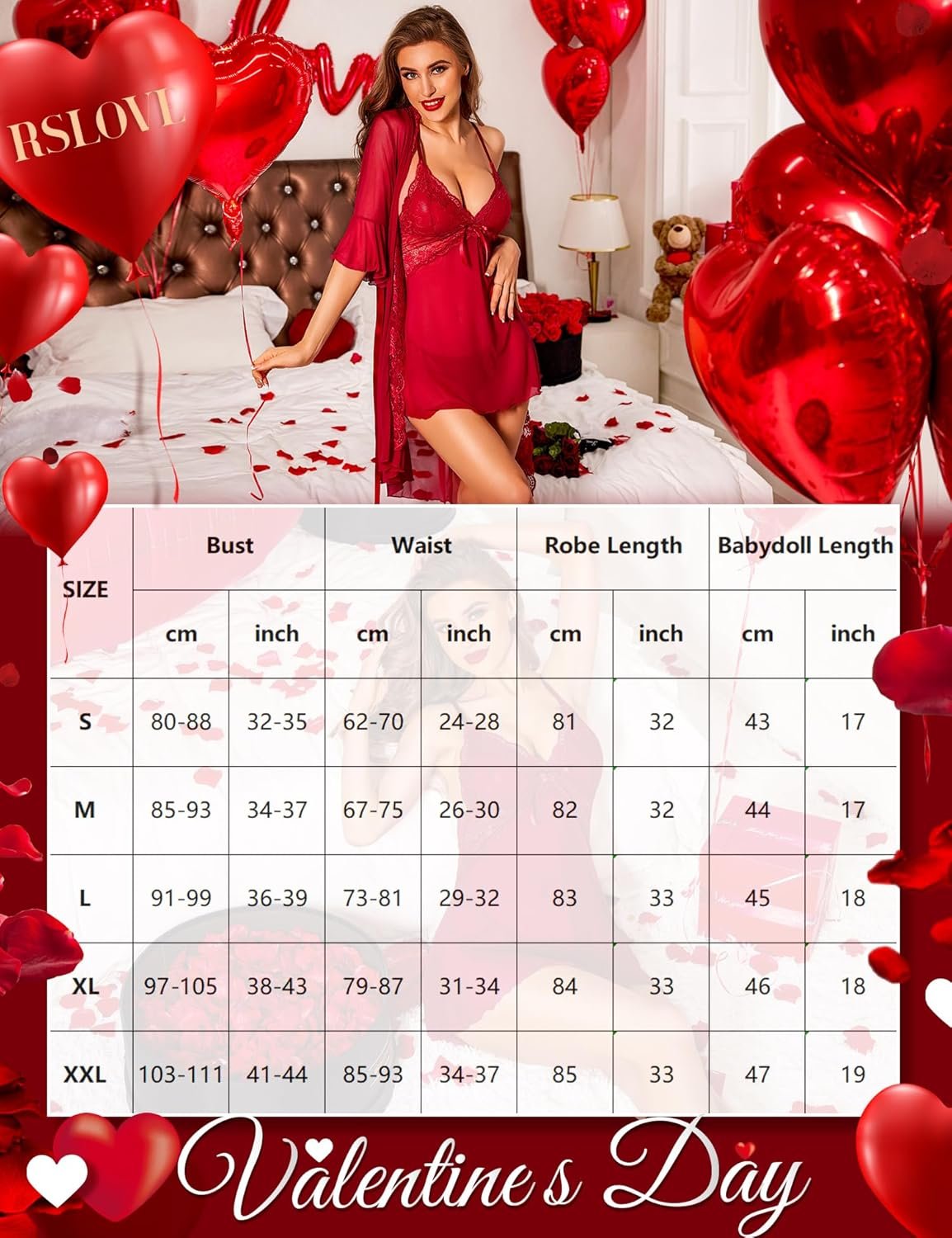 RSLOVE Women Sexy Lingerie Set – 3 Piece Babydoll & Lace Kimono Robe Strap Chemise Nightgown Mesh Sleepwear