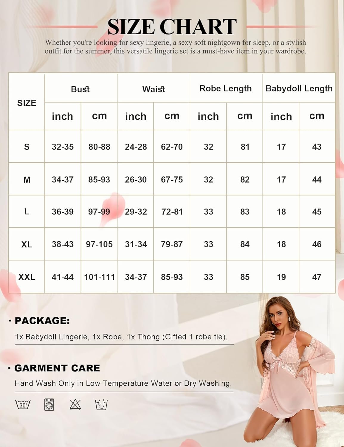 RSLOVE Women Sexy Lingerie Set – 3 Piece Babydoll & Lace Kimono Robe Strap Chemise Nightgown Mesh Sleepwear