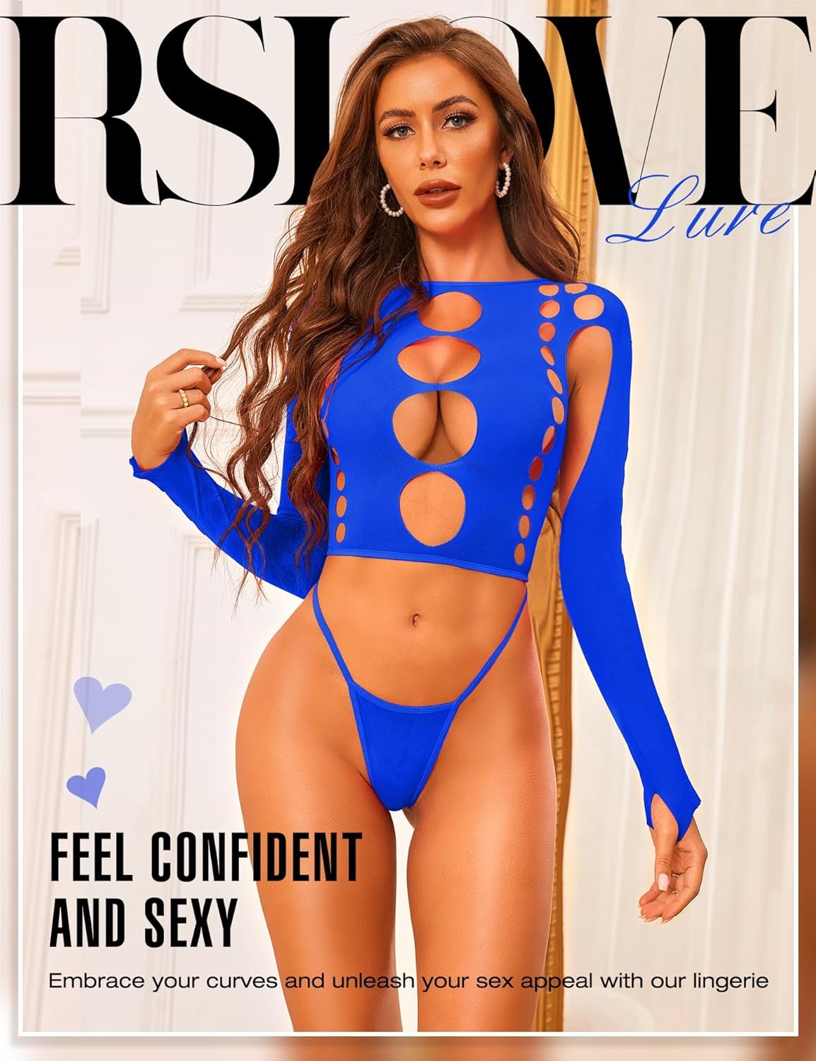 RSLOVE Women Sexy Lingerie Sets Naughty Bodysuit Cutout Top Long Sleeve Teddy Exotic Bodystocking Mesh