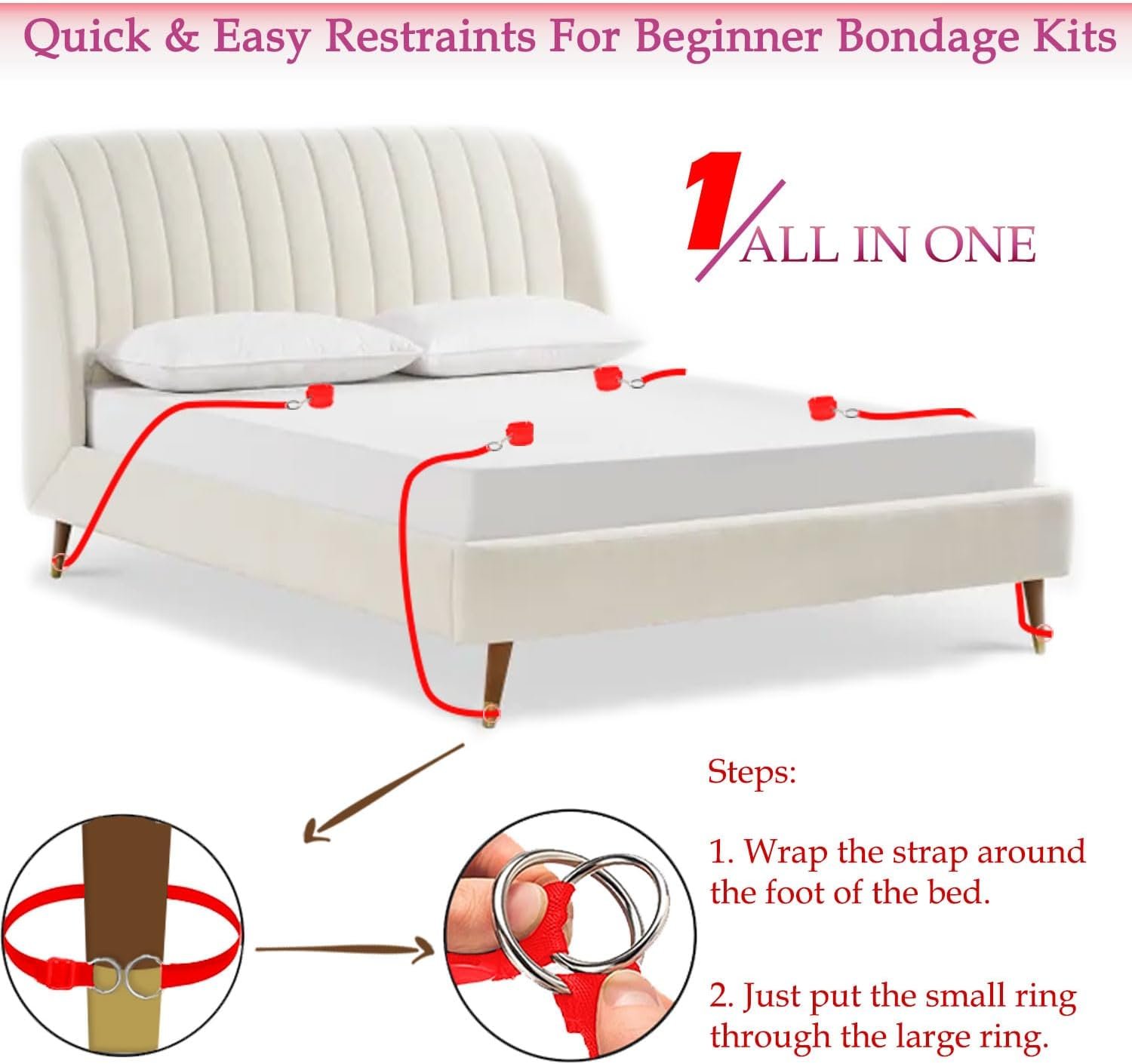 [ 4 Sex Straps BDSM Bed Restraint for Versatile Bondage Play ] – Different from other bondage kits, this BDSM bed restraint features 4 separate straps for quick and easy restraint set. Simply attach it to the bedframe or under the mattress, suitable for most bed types. Moreover, you can also use the straps to tie the restraints to a chair, table, or other object. It is perfect for beginners and some bondage experience.