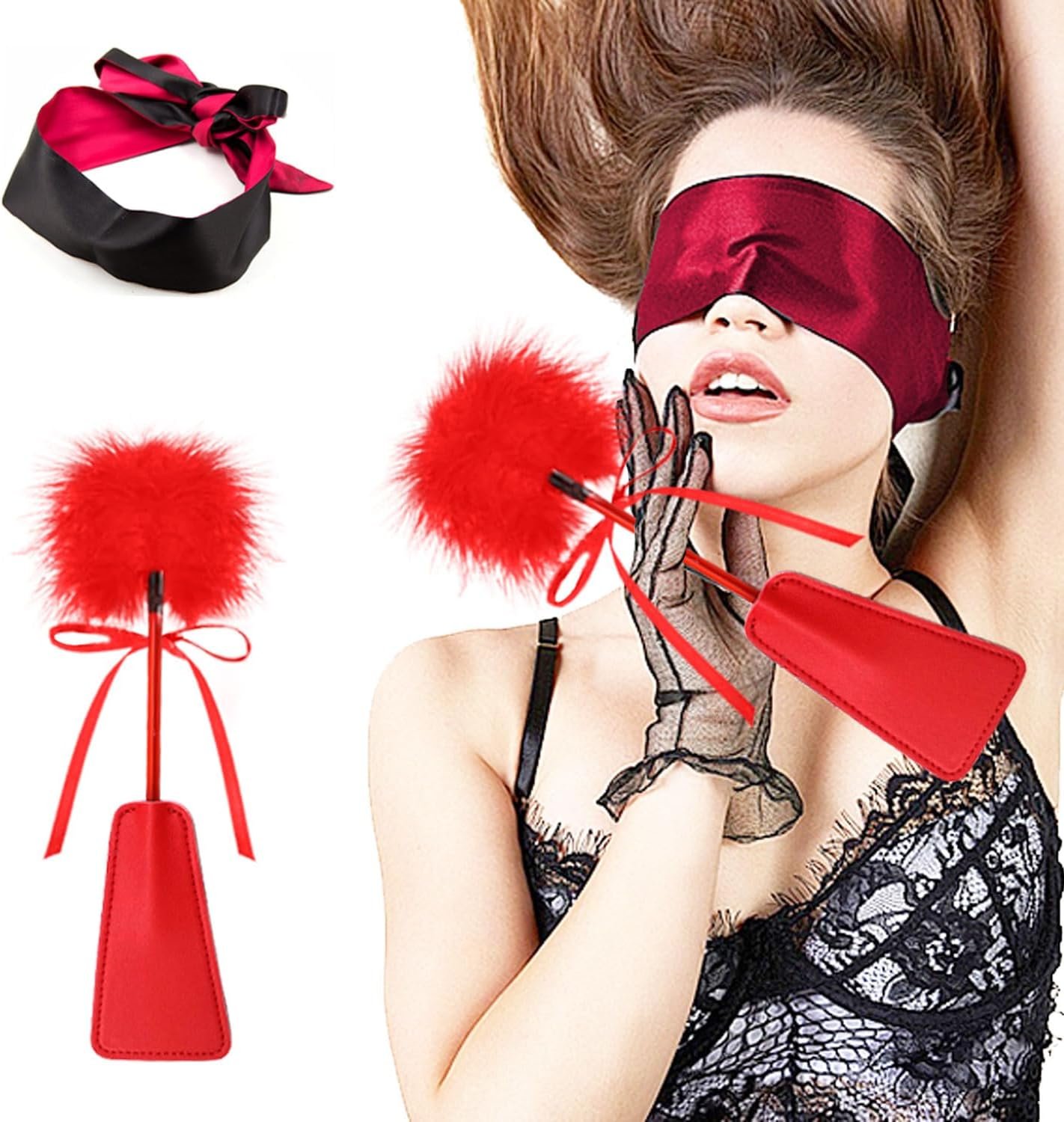 [ Blindfold & 2 in 1 Feather Paddle Sparks Wild Fantasy Sex ] – The sex blindfold fits comfortably over your partner’s eyes, immersing them in complete darkness, heightening their senses and anticipation. Caress and spank with the smooth bdsm paddle, or tease with the titillating feather tickler for kinky sex submission and enhanced sensations. Unleash fantasies with these enticing bdsm kit.