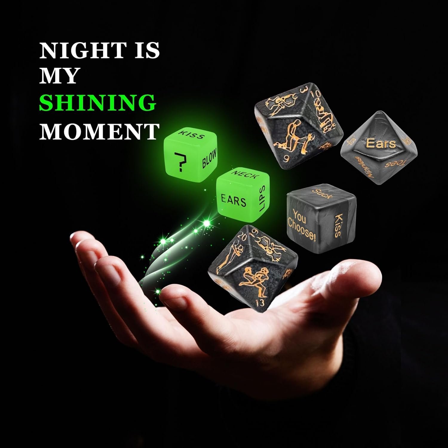 Sex Dice Party Favor, Sex Games Position Dice Game Naughty, Glow in The Dark Acrylic Material (Black 6PCS + Storage Bag)