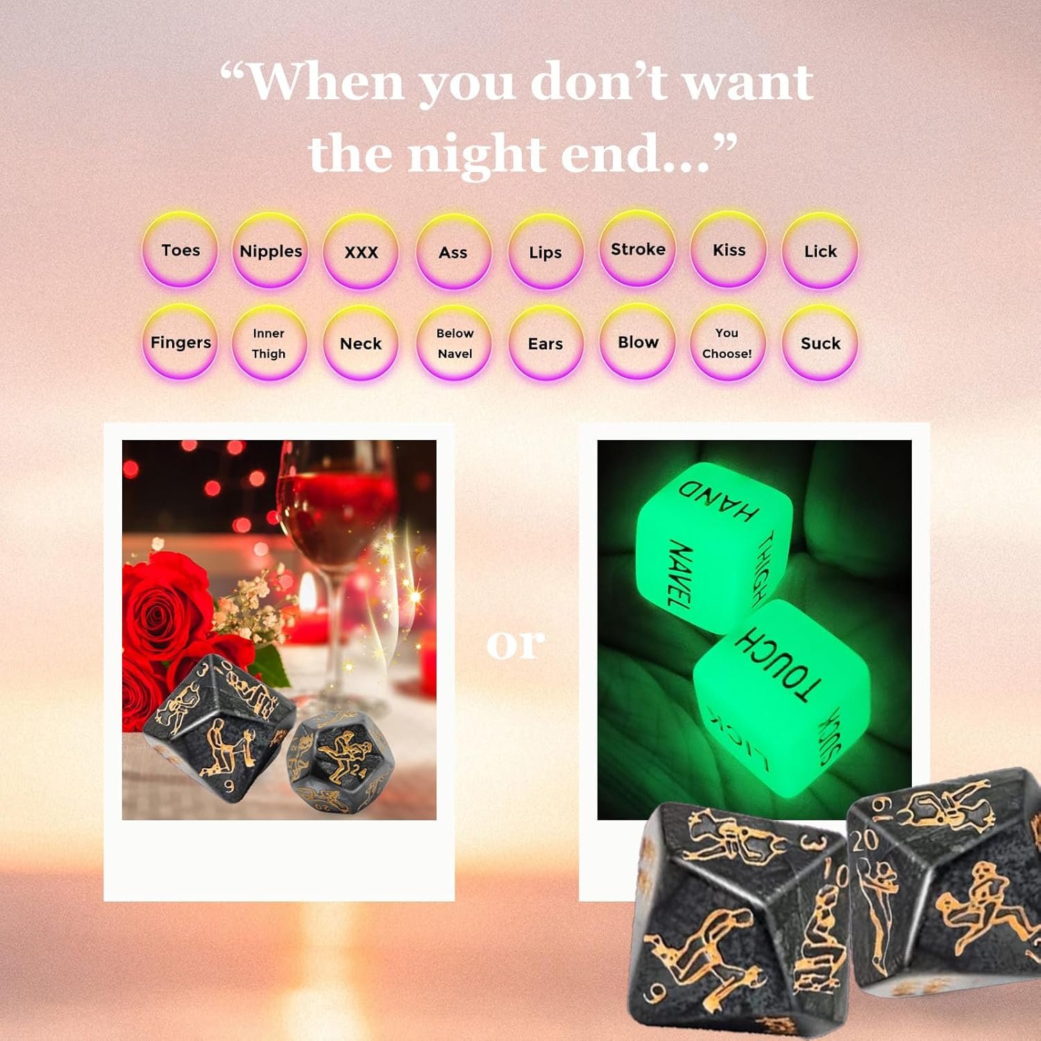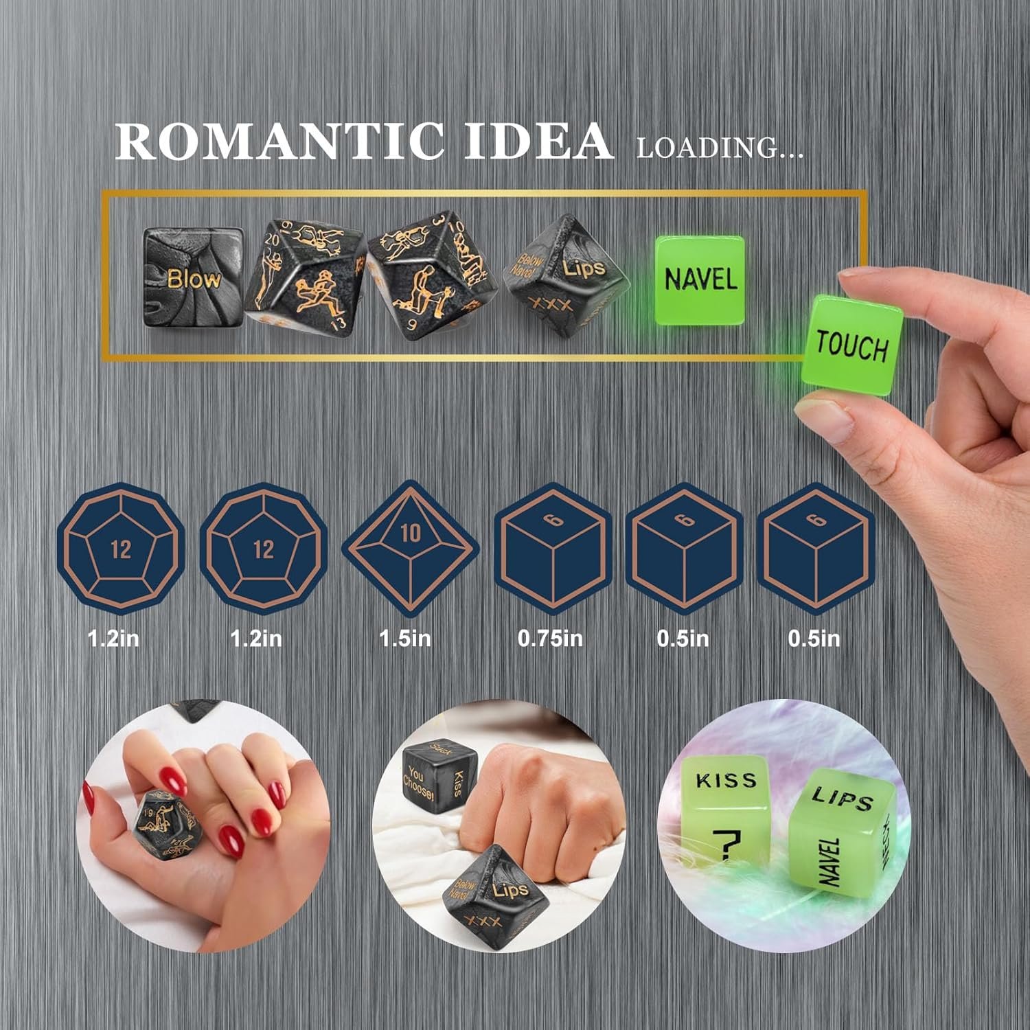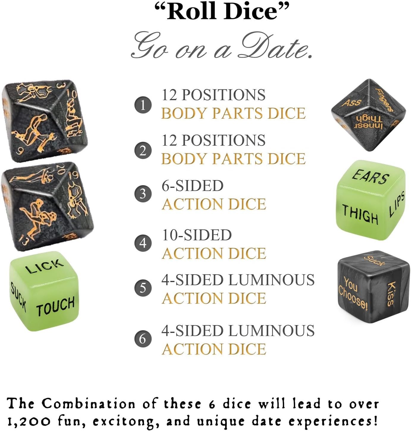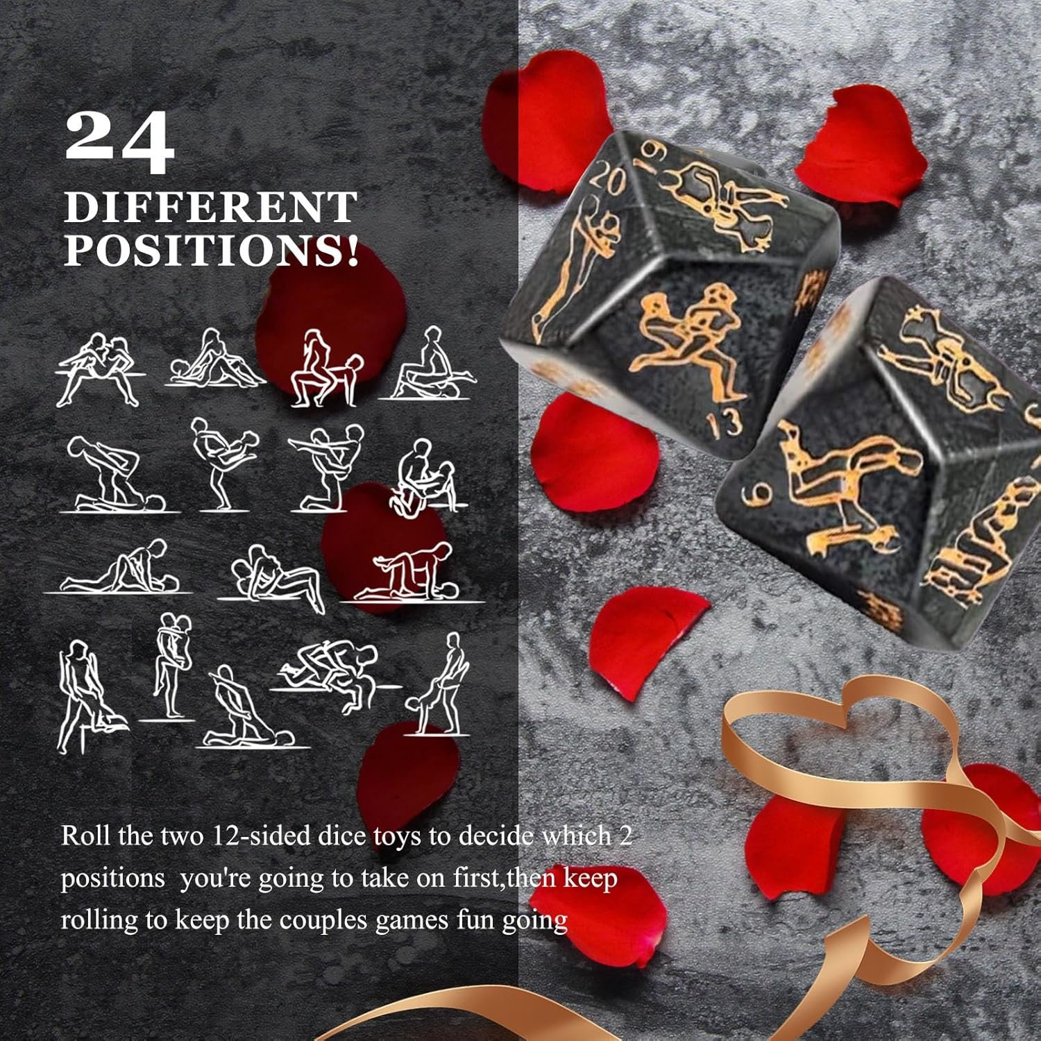 💓Play: roll the 6- and 10-sided love dice together to generate up to 60 different naughty actions for him or her.