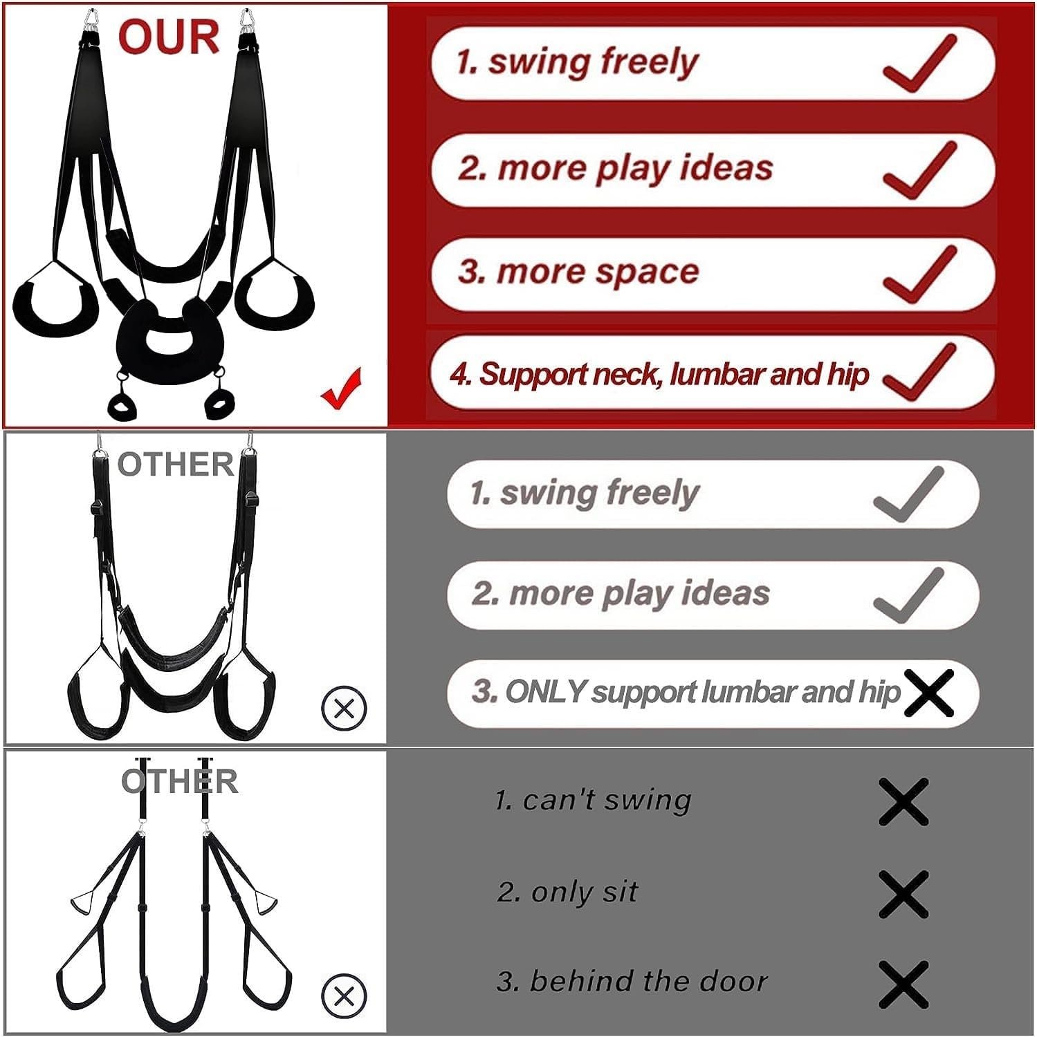 Luxury Material: Material with this love swing you can be sure that only robust and high quality materials are used Straps are made of sturdy nylon A steel spring as well as the solid steel chain ensure your safety, so that you can fully indulge in your love play when properly installed