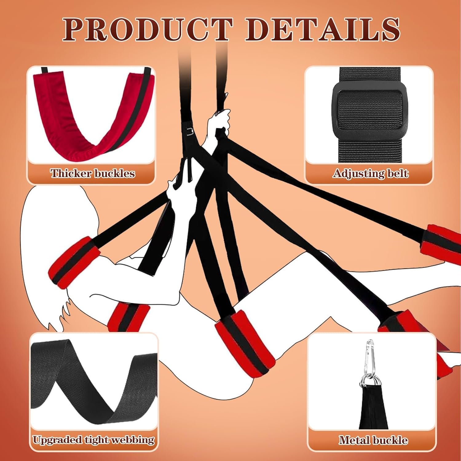 Dual-Use Design – Ceiling & Door Sex Swing Options: This versatile sex swings can be securely installed on the ceiling for a full range of motion or easily mounted on the door for quick and spontaneous fun. Enjoy limitless pleasure in any setting with this hanging sex swing sex toy. Perfect sex toys for couples