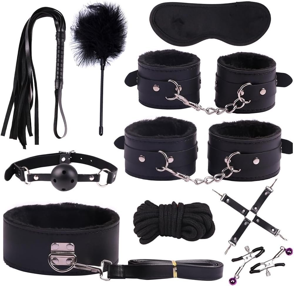 Comprehensive Set: Includes restraints kit, anal plugs, dildos, bodysuits, vibrators, penis rings, sex dice, sex trap, candles, fun scratch cards and penis sleeves.