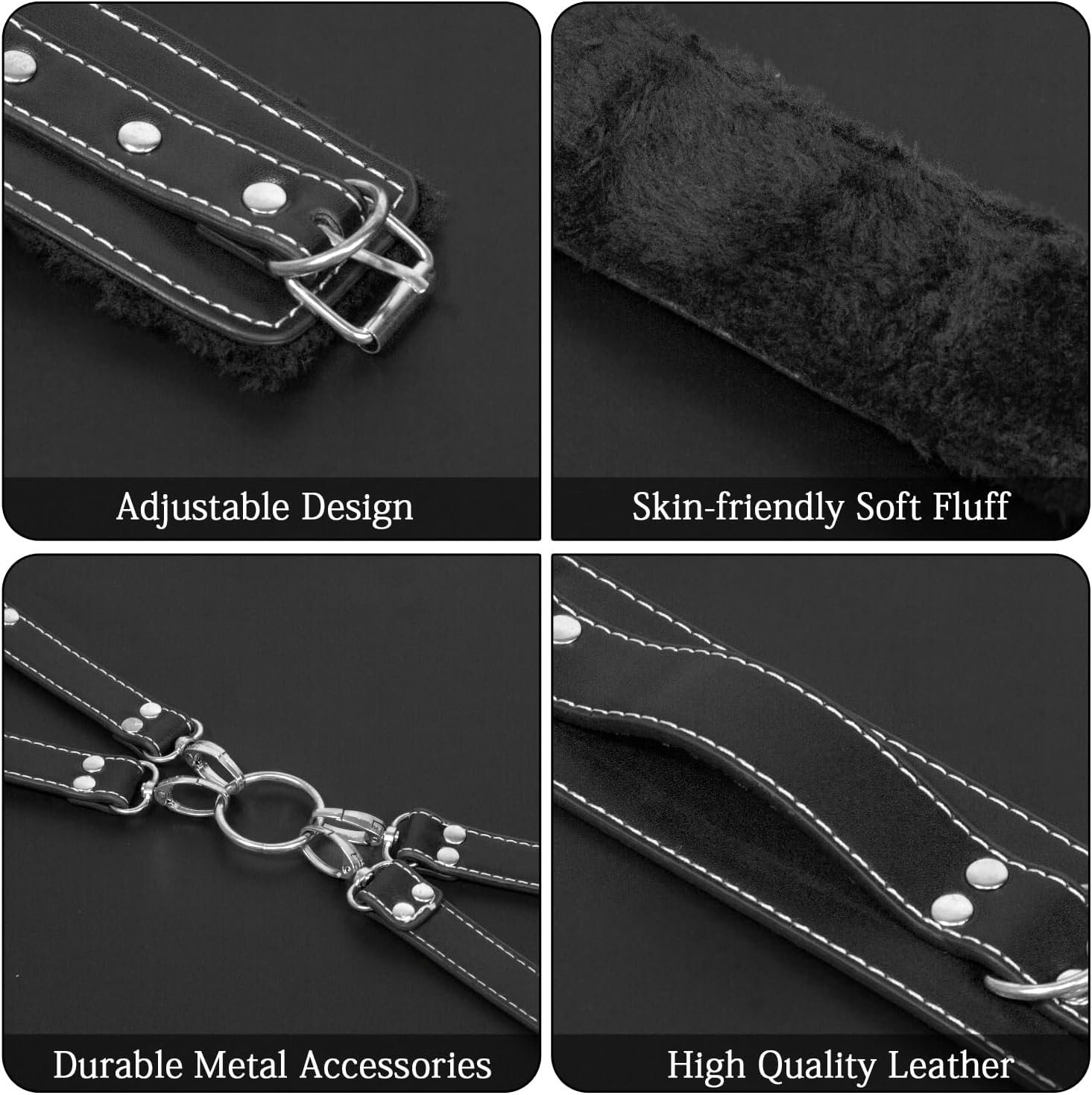 Smooth Materials and Safe Accessories – Our restraints are crafted from fully hemmed smooth Pu leather material, making them ideal for those new to the world of restraints and sex toys. The bondage cuff’s outer leather is strong and lined with soft plush material that is gentle on the wearer and provides comfort and safety. The upgraded SM 4 pcs suit is designed to enhance sexual pleasure.