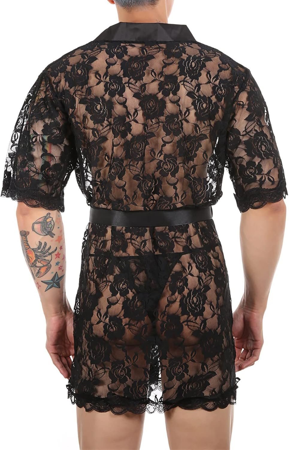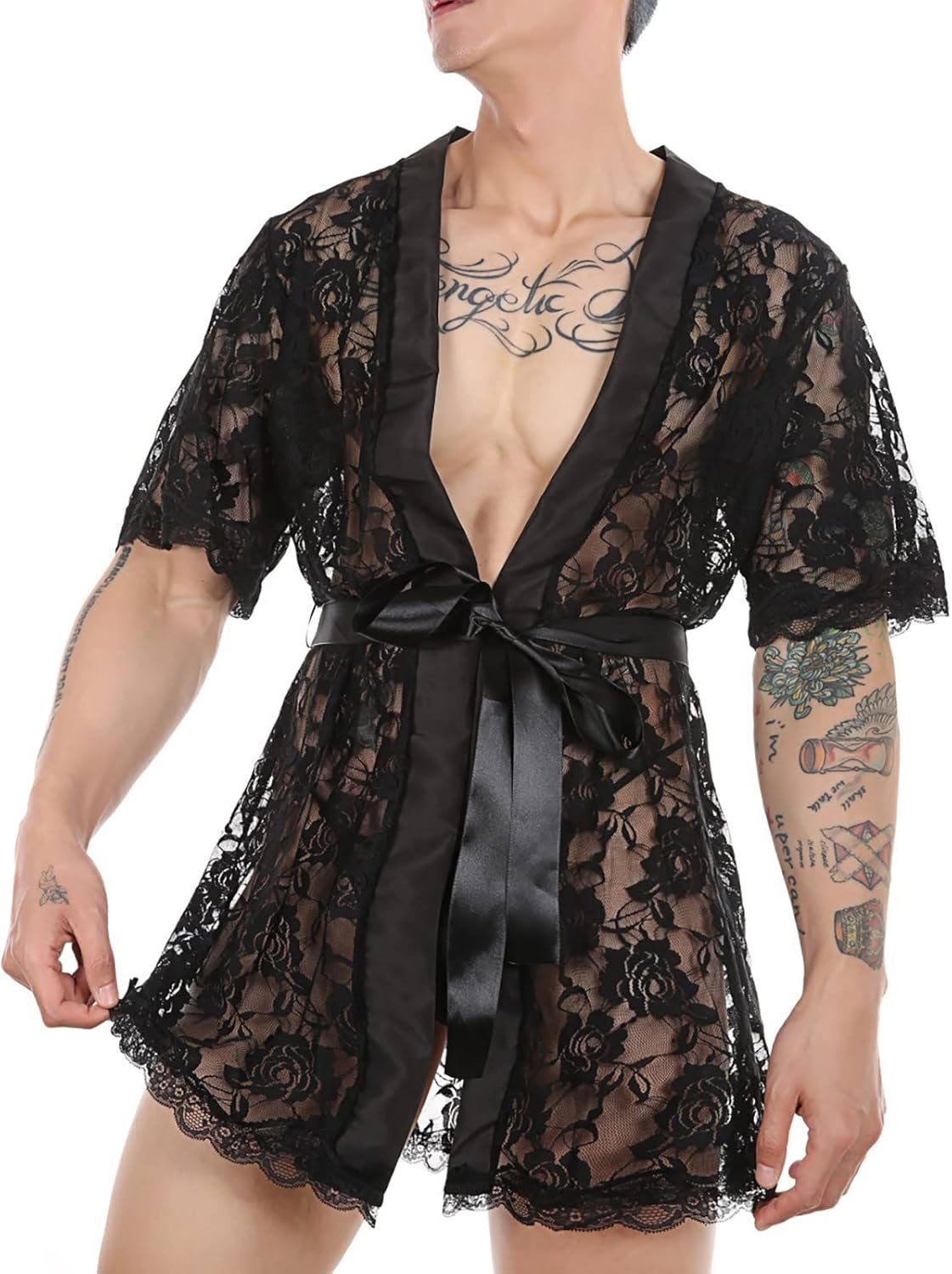 Sexy Lingerie for Men Men’s Sexy Sissy Lace Bathrobes Pajamas Robes Set Night Lingerie with Thong