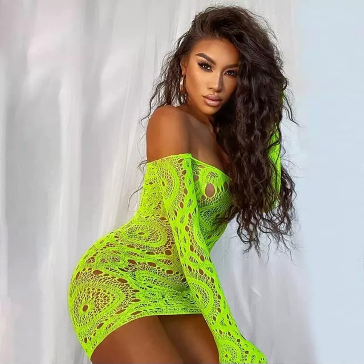 TOYTEM Womens Lingeries Outfits for Naughty sexplus Role Play Slutty Fishnet Black Mini Dress Long Sleeve Suitable for Exotic Stripper or Clubwear ONE Size Tummy Control plus size. All sizes fit dresses. When you first try on the net bodysuit, you might be shocked by how “tiny” it appears. But don’t worry, the bodysuit was specifically made with a fabric that is extremely elastic to embrace you in all the right areas! Transparent lingerie mesh dress Body Sculptor: This dress is essential to show your body’s natural shape because of its whisper-soft fabric and seamless design. Bodysuit that is very flexible and comfortable. Extremely attractive on any body type, but especially on curves. Comfortable Material: This bodysuit with a hollowed-out front design, amazing elasticity, and plus size sexy lingerie for women hide fat belly, accentuate the lovely figure. Lightweight, elastic, and skin-friendly lace see-through design decorates the body contour on the waist, both legs, and upper arms. Breathable mesh material covering the bottom and breast area makes it simple and comfortable to wear all day. Occasion: The seamless surface, light colour, and length of the body-shaping bodysuit make it unnoticeable under your everyday clothing. With any outerwear, including shorts, low-cut shirts, skirts, or knee-length dresses, you may wear it everywhere. It works for the office, casual wear, sleeping, parties, etc.