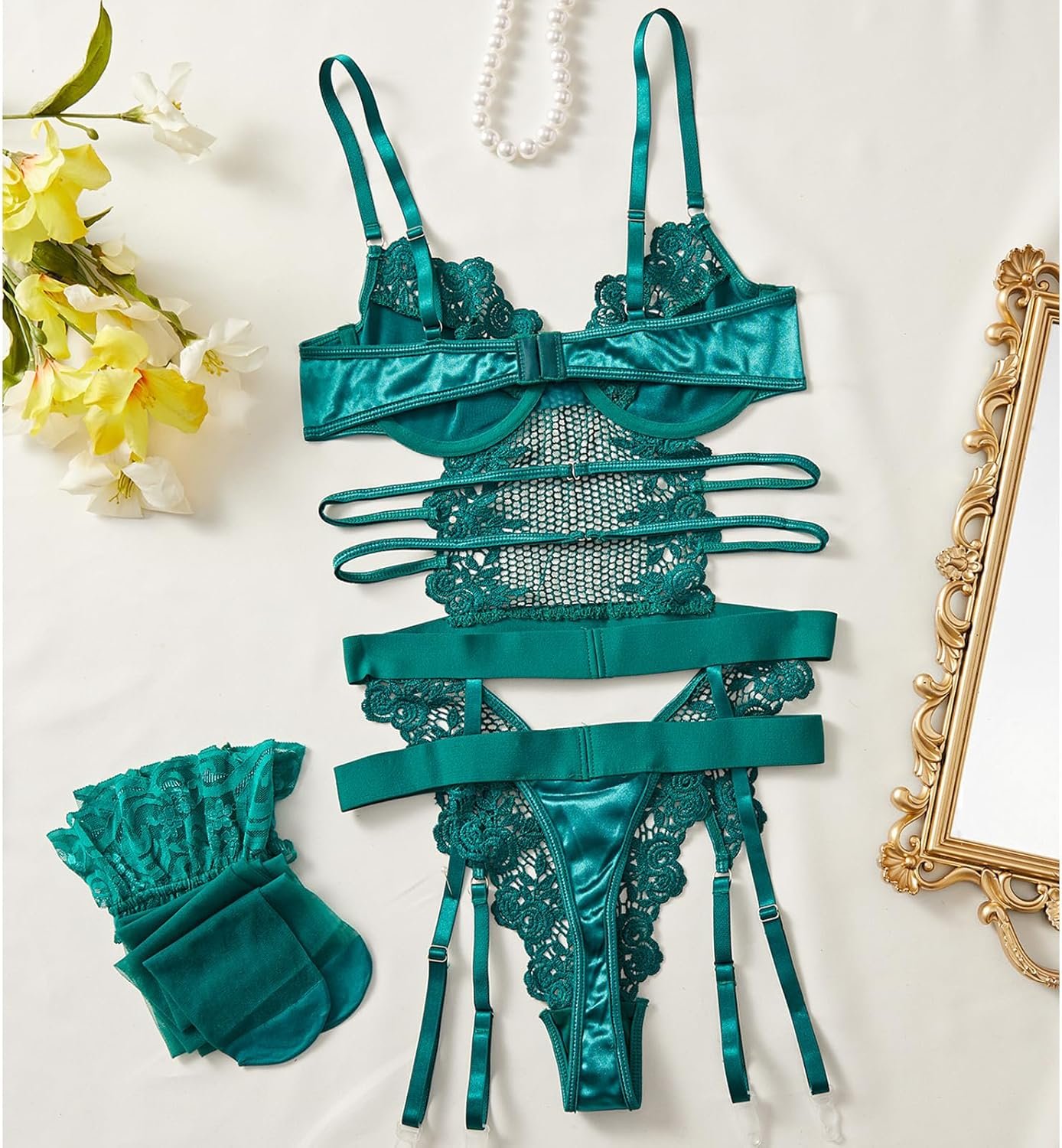 Sexy Lingerie Set 4-Piece – Lace Garter Belt & Stockings 22