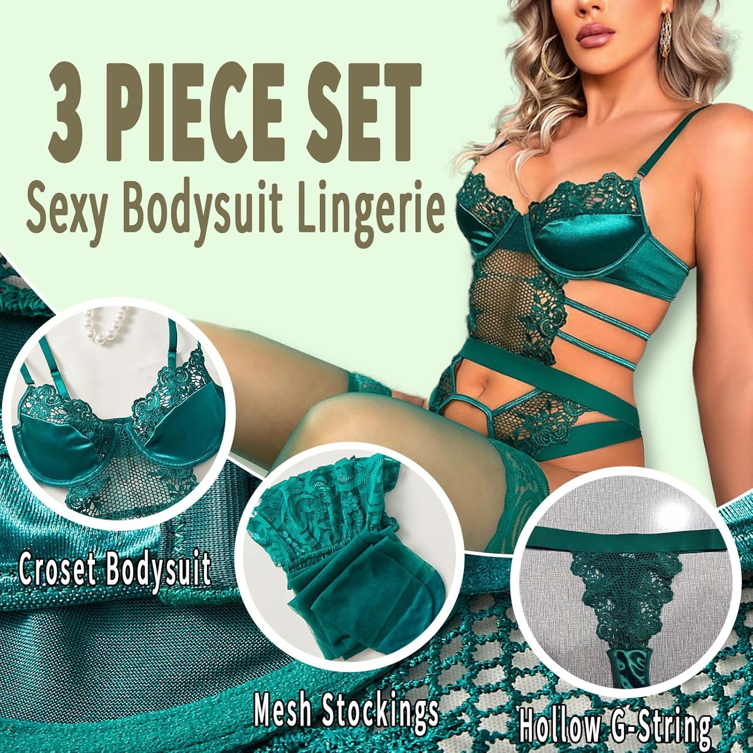 Sexy Lingerie for Women Lingerie Set with Garter Belt Floral Embroidered Lace Bodysuit Teddy Baby Dolls Panty