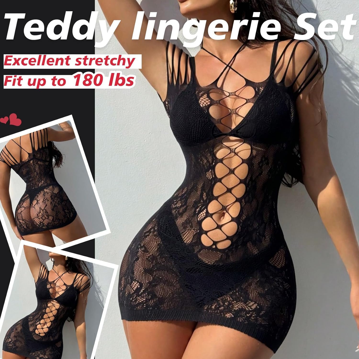 Sexy Lingerie for Women Naughty Fishnet Lingerie Set Bodysuit Outfits Erotic Sheer Mesh Teddies
