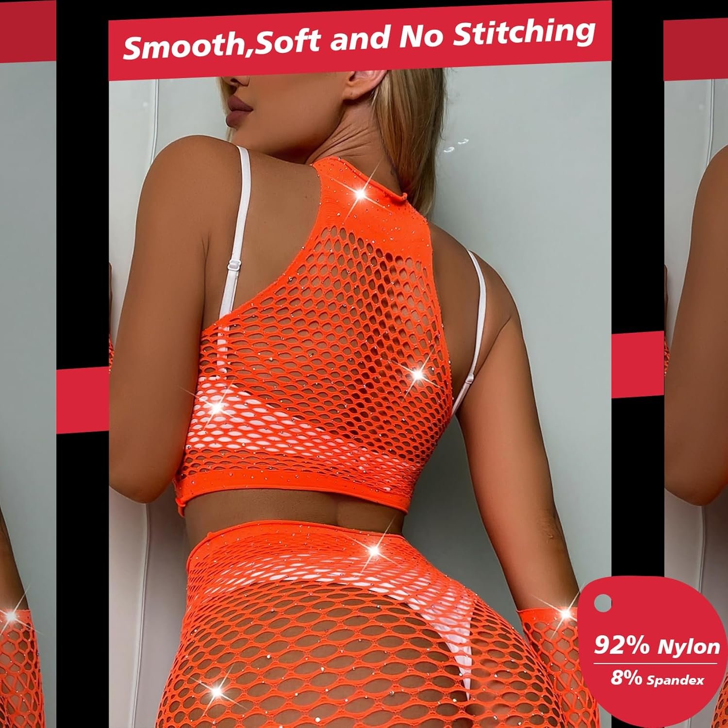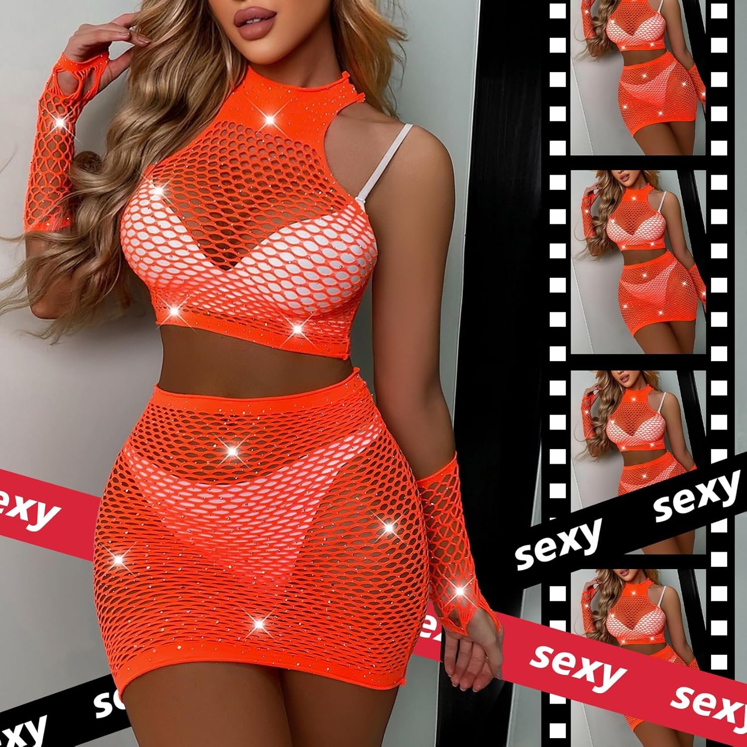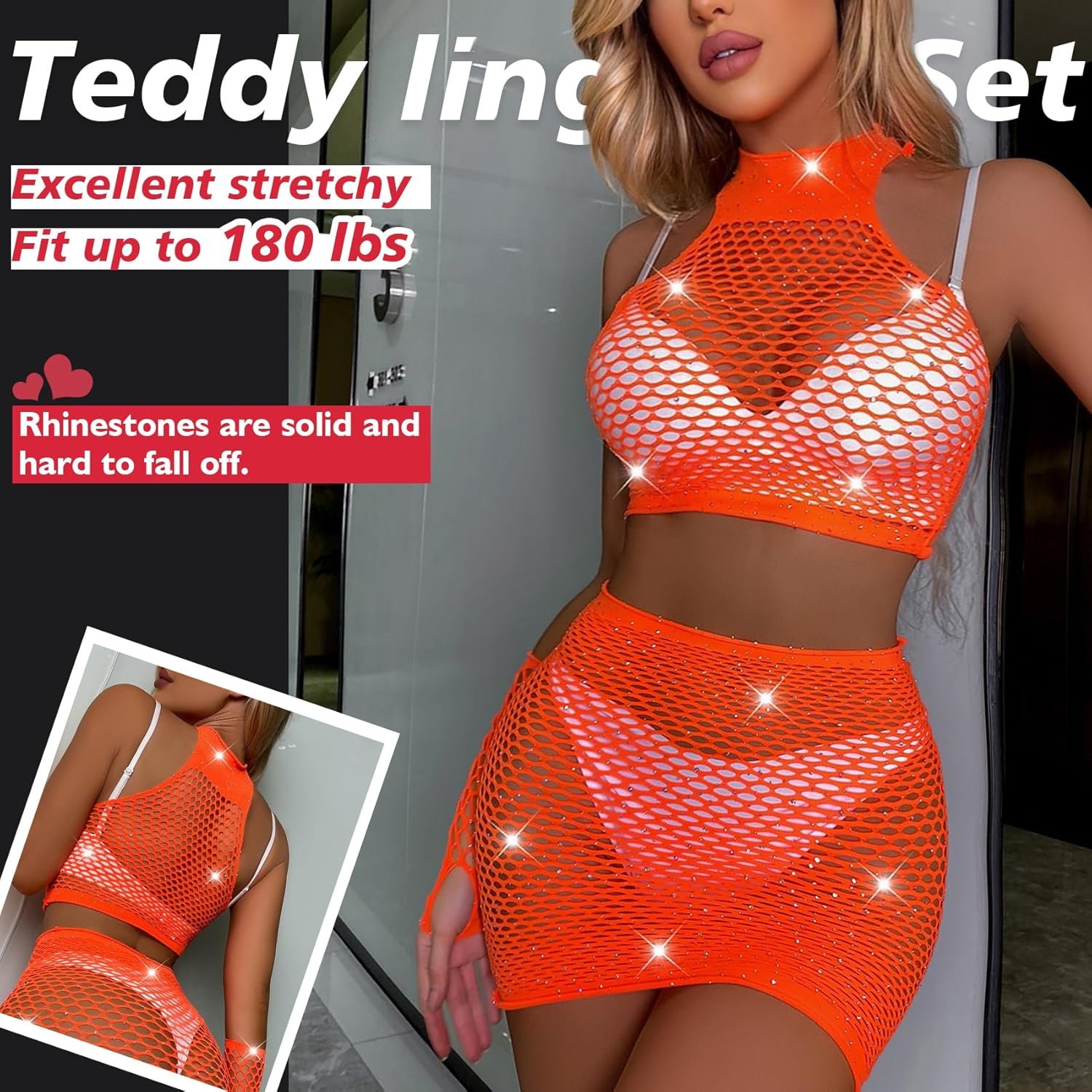 Sexy Lingerie For Women Naughty Sparkle Rhinestone Lingerie Set Fishnet Teddy Erotic Mesh Rave Outfit