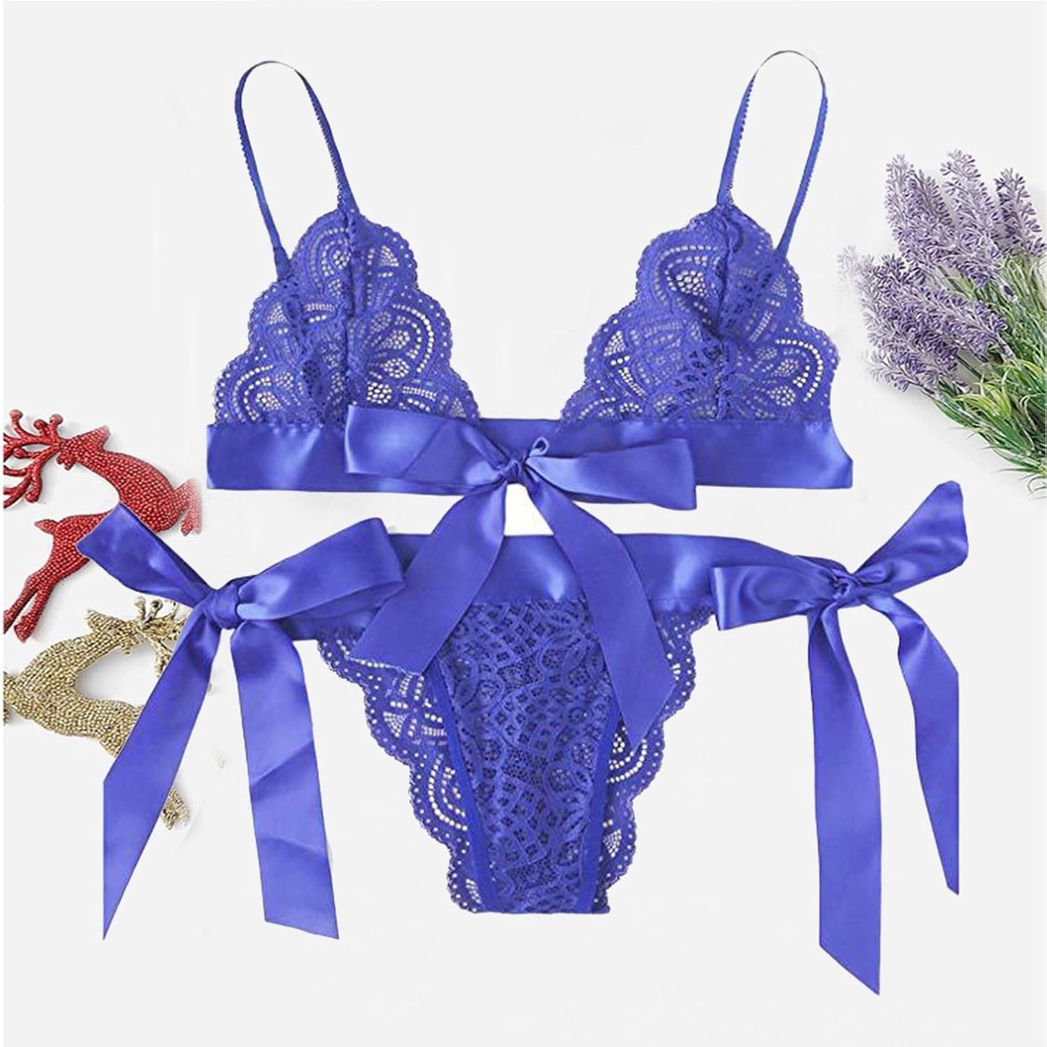 Sexy Underwire Push Up Scallop Floral Lace Sheer Lingerie Set for Women Bow Tie Bra and Panty 2 Piece Sets Christmas