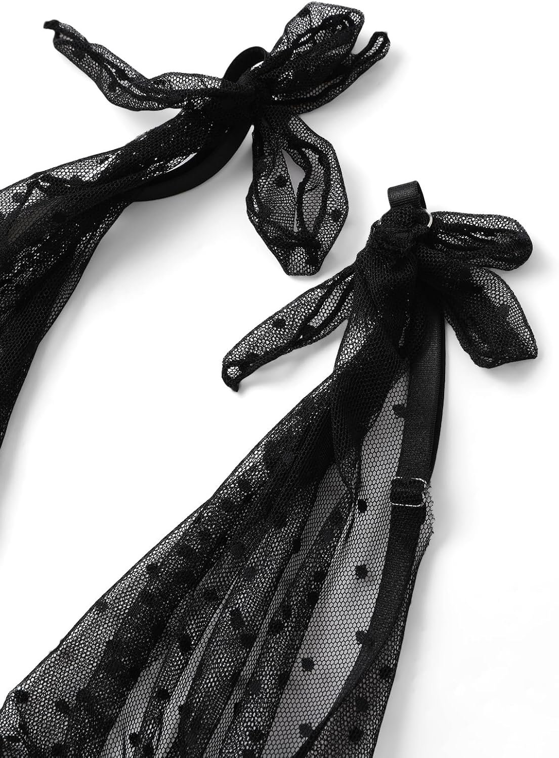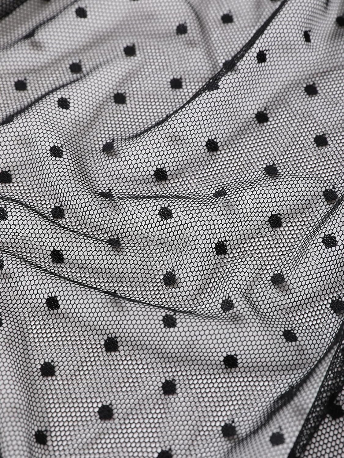 Sexy Women’s Black Sheer Nightgown with Polka Dots and Lace for Women – Elegant Sleepwear