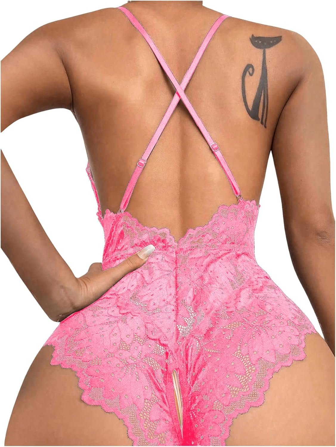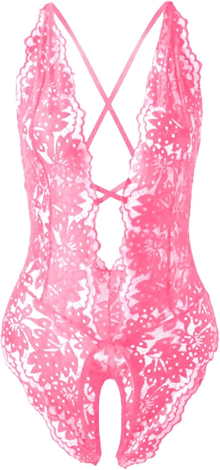 SOLY HUX Women’s One Piece Lingerie Sexy Lace Babydoll Deep V Teddy Criss Cross Backless Teddy Mini Bodysuit