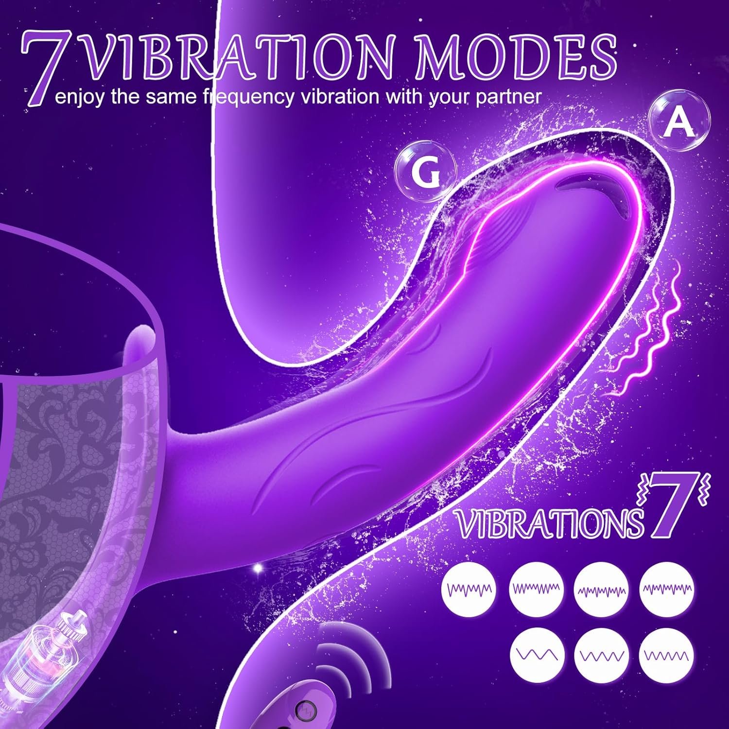 [Vibrating strap-on dildo]: This toy consists of a strap-on dildo and vibrator, couples can enjoy 7+7 synchronized vibrations at the same time. The shape of the vibrator fits the body curve accurately and better stimulates the wearer’s G-spot and clitoris
