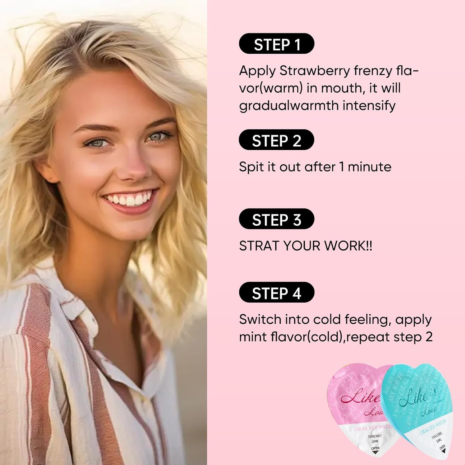 Dual Flavor Fusion​: Combines juicy strawberry essence with cool mint extract for a balanced, invigorating rinse. Each strip delivers 30 seconds of fresh-burst sensation, neutralizing food odors from garlic to coffee.