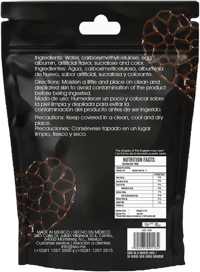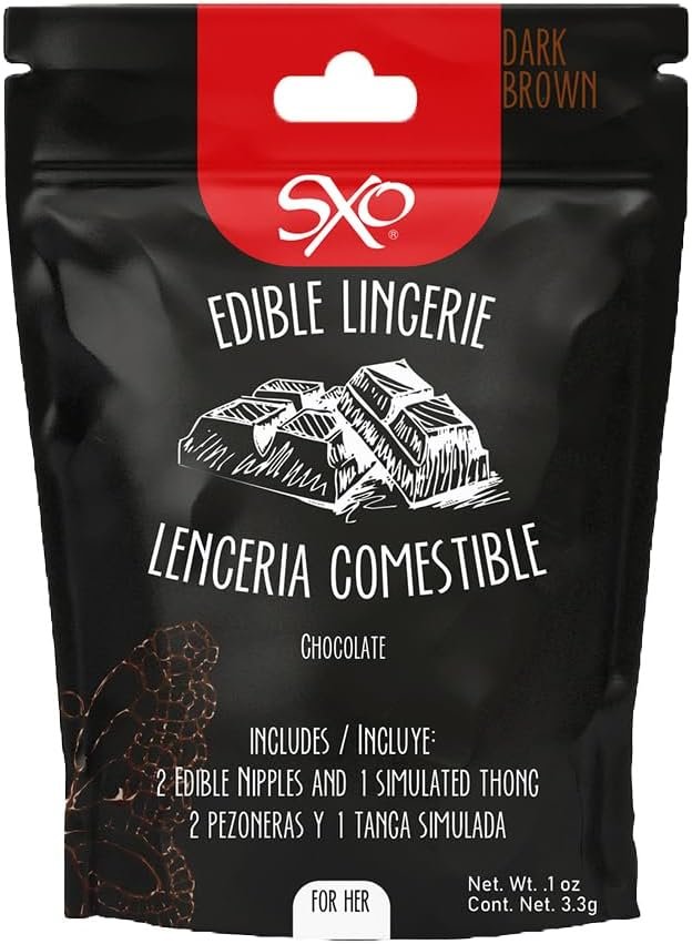 SXO Flavored Edible Lingerie for Couples (Chocolate) -Coordinated 2 Edible Nipples and 1 simulated thong, fashion and erotic gift