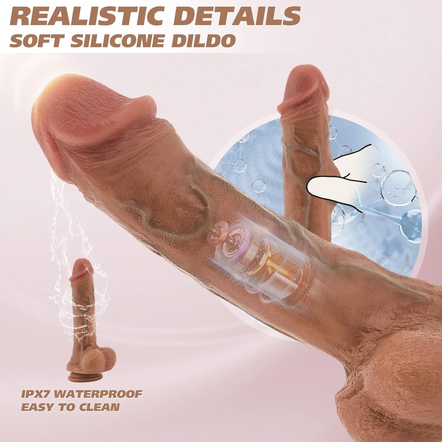 【Strong Suction Cup & Waterproof Design】VOILTY suction cup dildo is a great option if you want to enjoy amazing hands-free penetration. This women sex toy comes with a strong suction cup that you can stick to any smooth, flat surface, letting you enjoy penetration at any angle you like. This dildo is made of waterproof silicone material and features an IPX7 waterproof design, allowing it to be used in the shower or bathtub, and it is also very easy to clean.