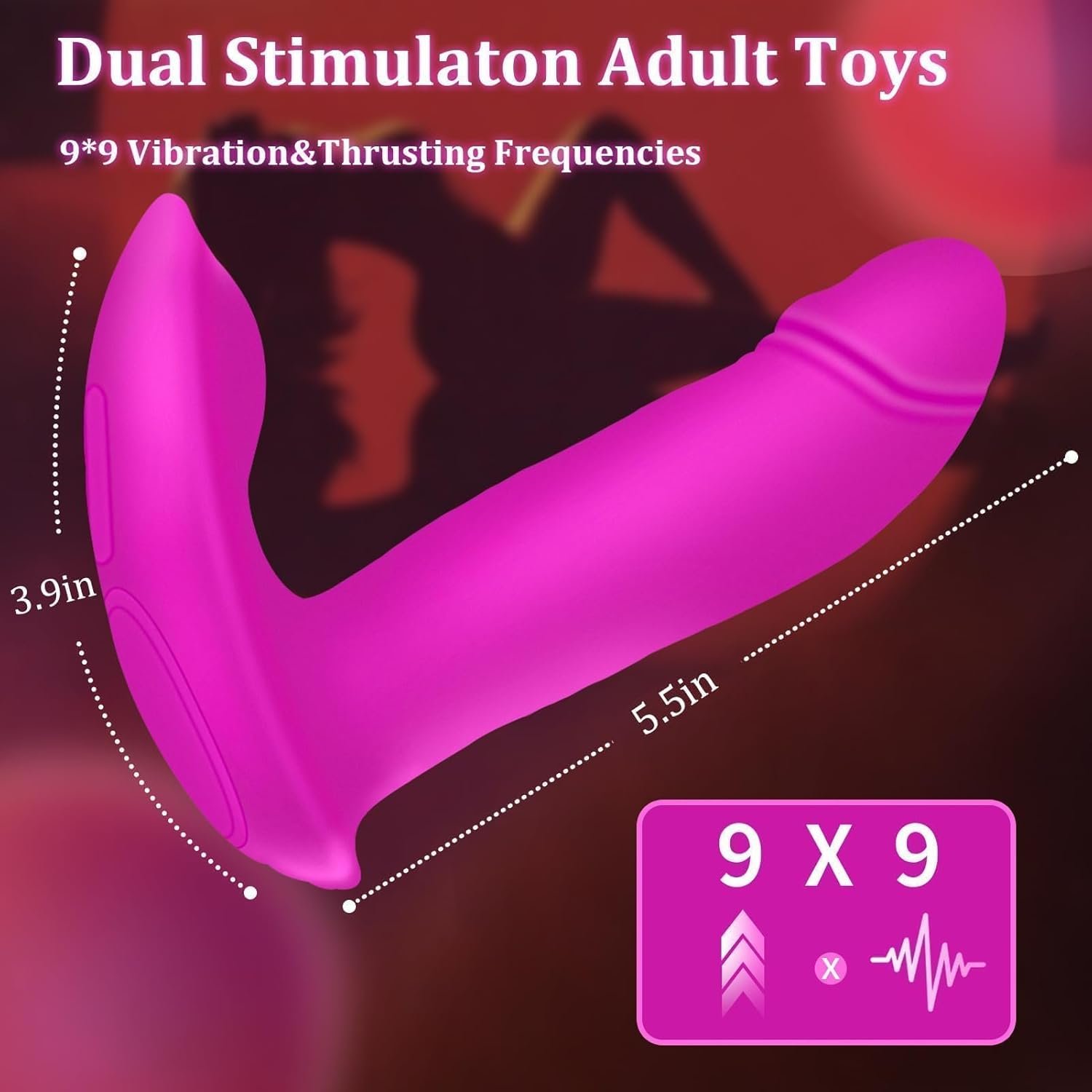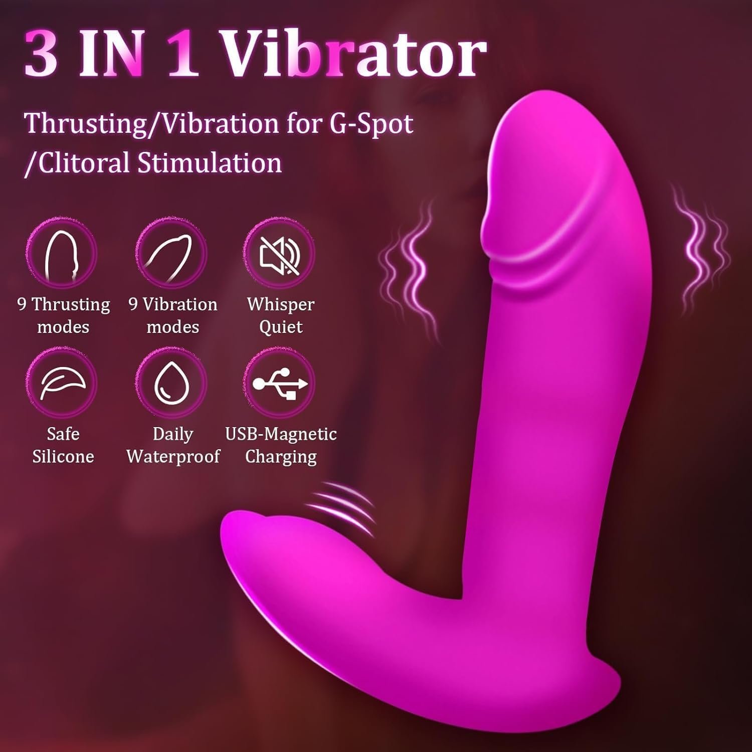Thrusting Dildo G Spot Vibrator, 3 in 1 Adult Sex Toys for Women Wearable Vibrator with App Remote Control and Strapless Strap-On Dildos, Butterfly Couples Sex Toy Sexual Pleasure Tools for Women
