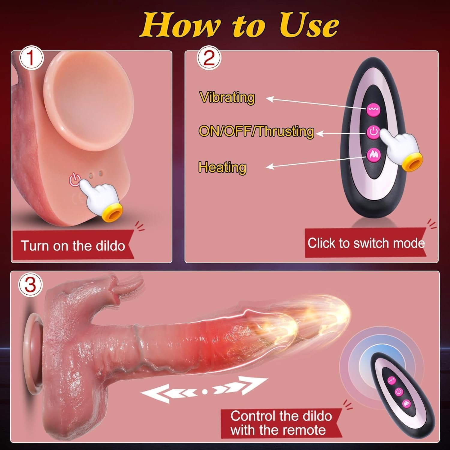 【 Multifunctional Stimulation Sex Toy】This realistic dildos has 3 thrusting modes, 9 vibrating modes and heating function. Thrusting modes can extend the length of the penis, thrusting deep in the vagina, explore and hit your sensitive points. Vibrating modes can stimulate the G-spot, vagina, anal, prostate or other erogenous zones with a high frequency, making it easier for you to reach orgasm. Meantime, the unique soft mini tongue will stimulate the clitoris to bring you a double real sexual feeling. Each function is controlled by one individual button, but you can freely combine them to meet your various needs.