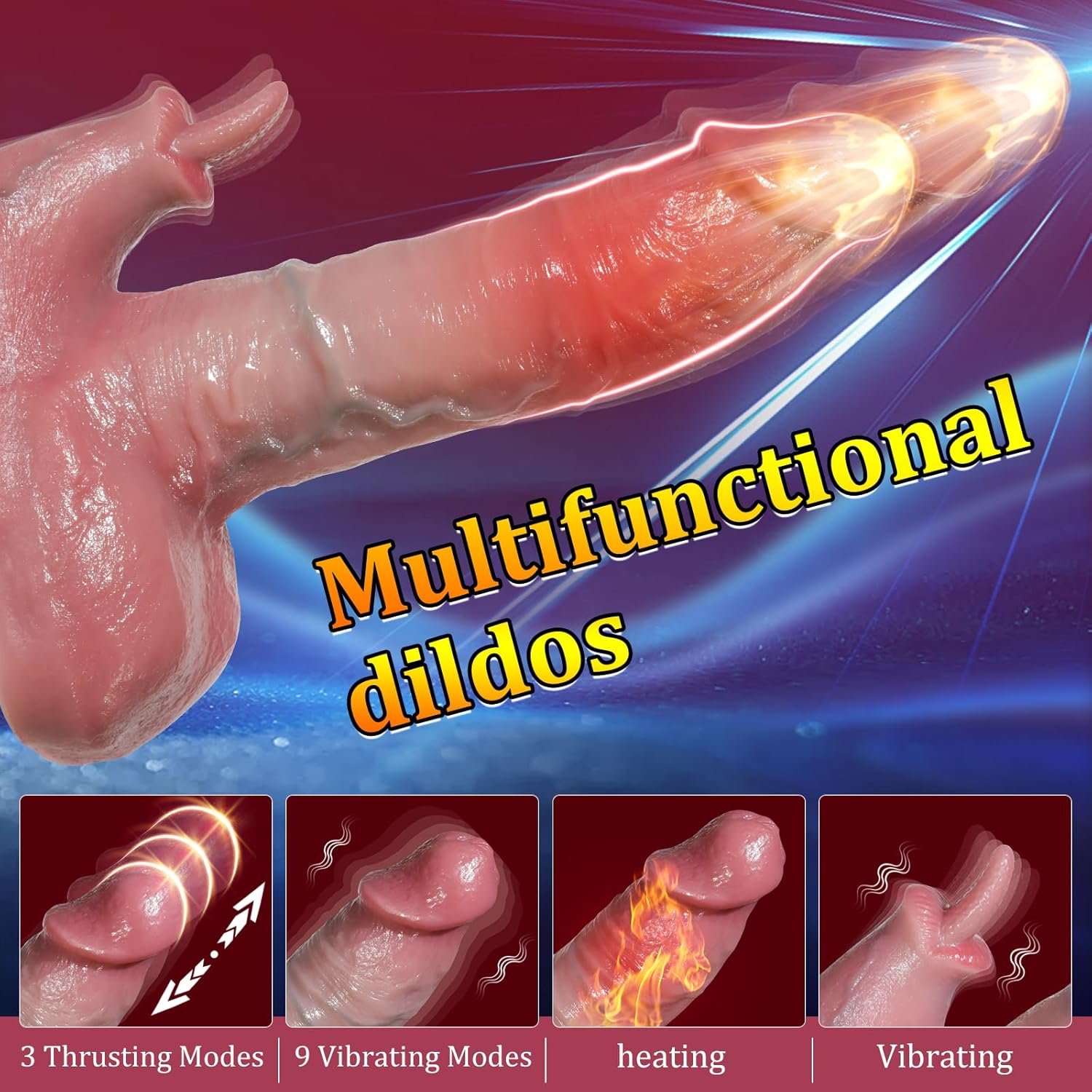 【 Ultra Realistic Vibrating Dildo】 This 8.6” G-spot thrusting dildo has a realistic look, with a lifelike glans, cyan veins, wrinkle-filled testicles and a soft mini tongue. It simulates a real male penis, which provides you with the sensation of natural intercourse. When the dildos gradually fill you up, You will get extraordinary excitement and satisfaction, just like being with a real partner, providing you with a happy sexual experience. Valentine’s day gifts for her.