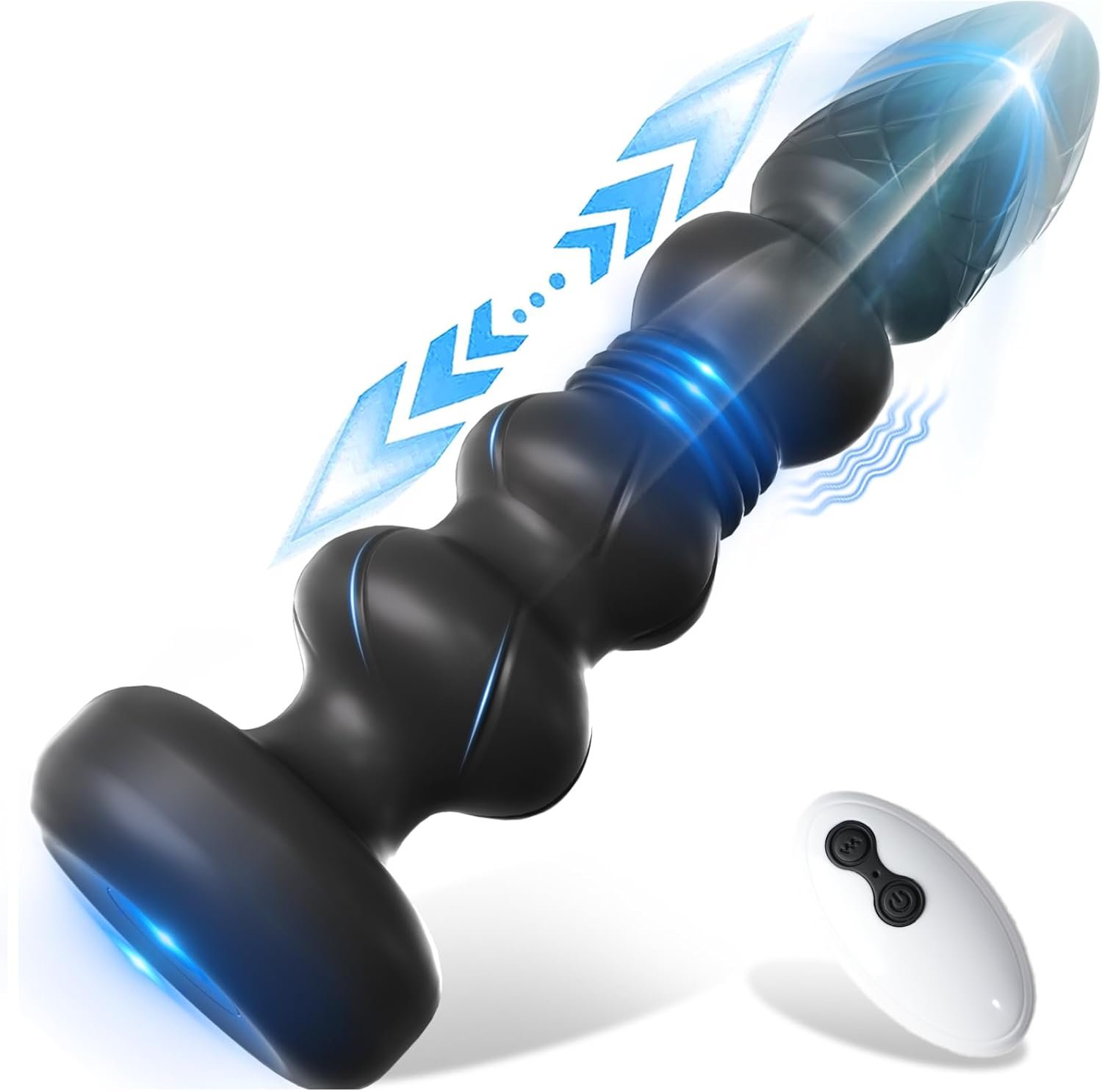 Thrusting Vibrating Prostate Massager Anal Butt Plug, Anal Male Adult Sex Toys for Men Women Couples, Remote Control Anal Dildo Vibrator, 10 Modes Anal Beads, HOESDIK Anal Training Sex Toy Game Play