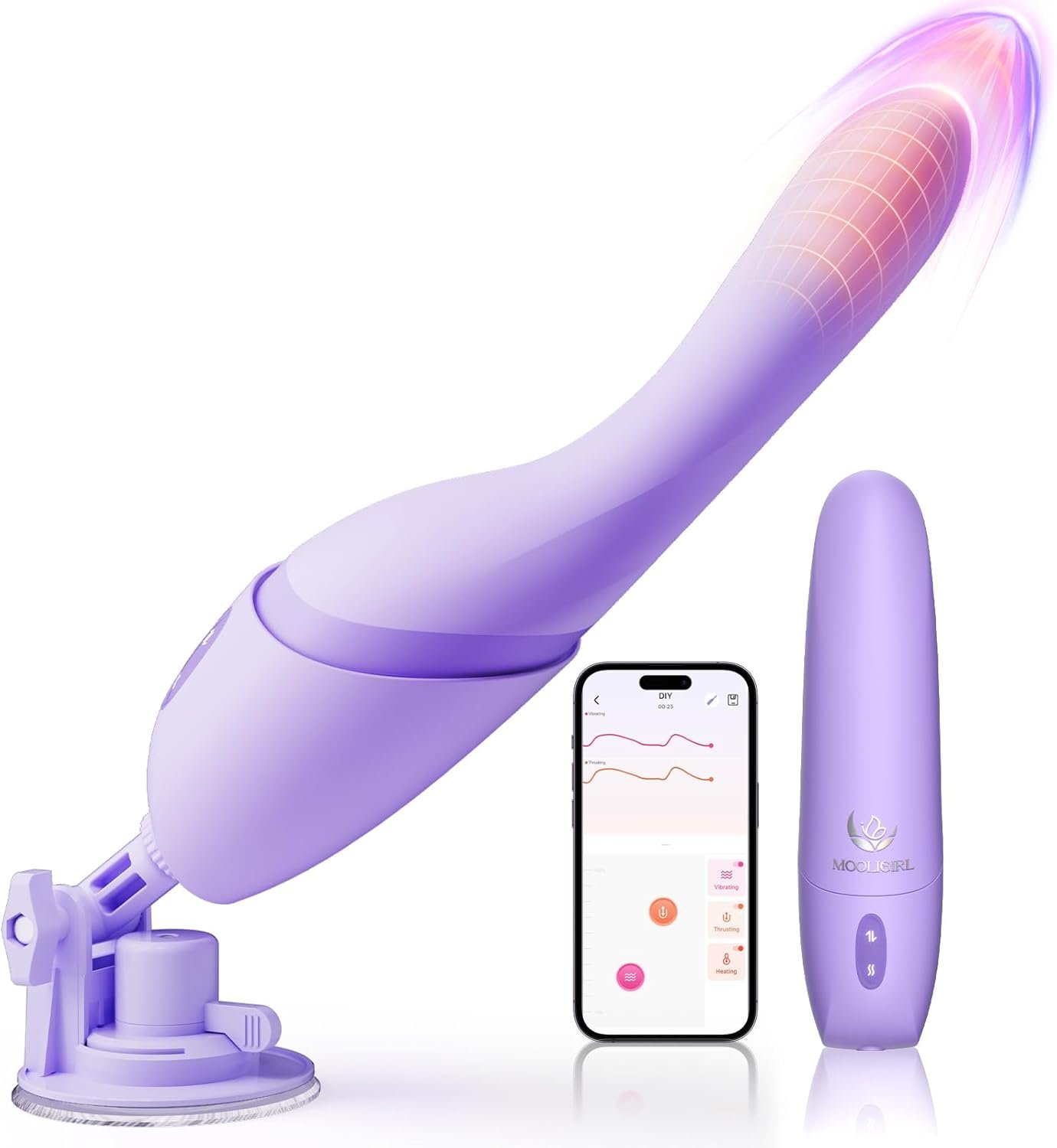 Thrusting Vibrator Adult Sex Toys for Women – 5IN1 Sex Machine with Heating & 10 Thrusting Vibrating Modes, App Control & Detachable Suction Base, G Spot Anal Dildo for Couples Female Men Pleasure