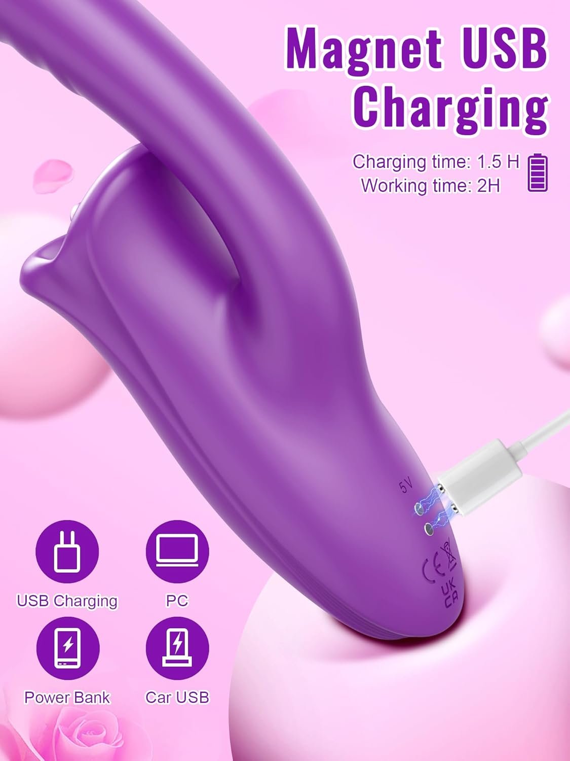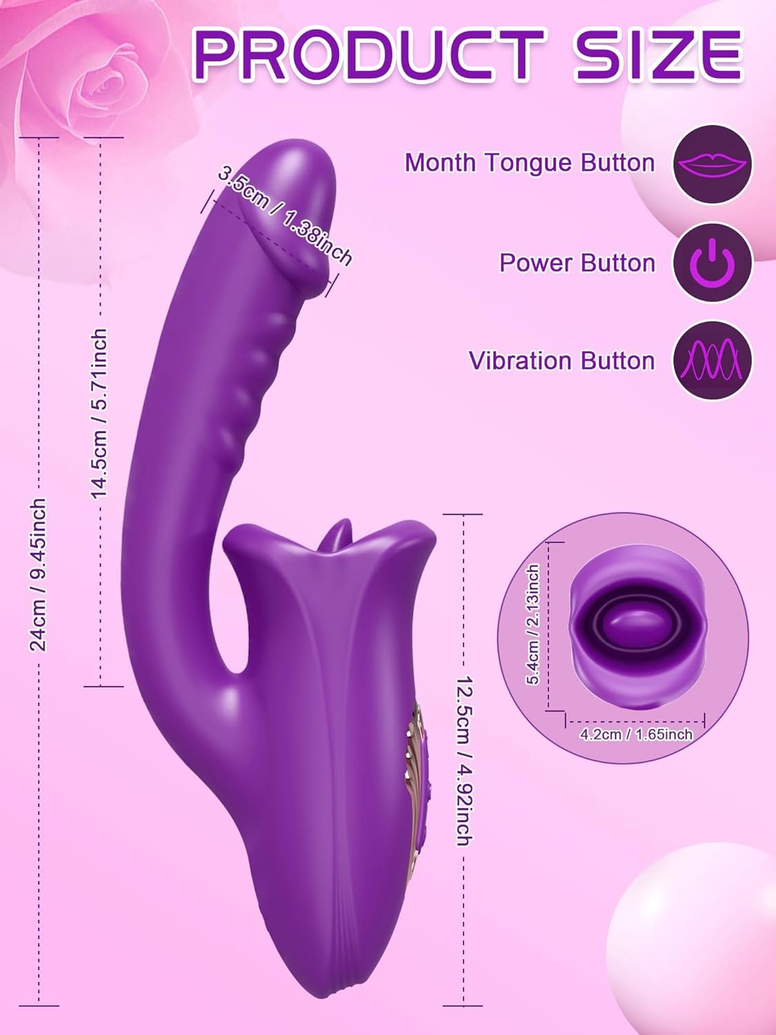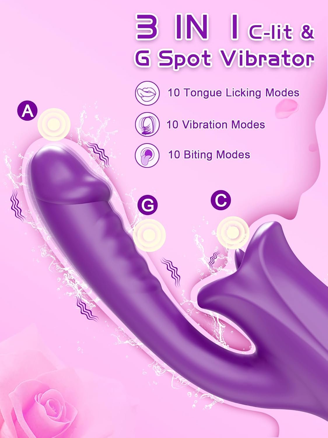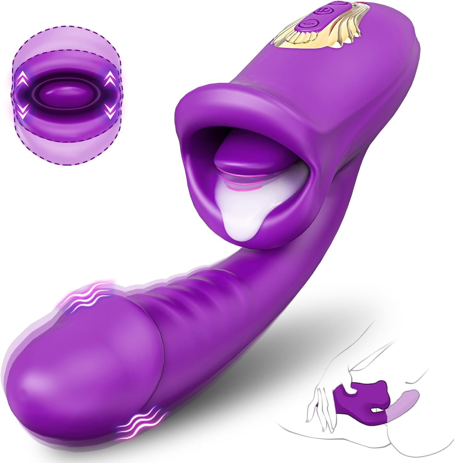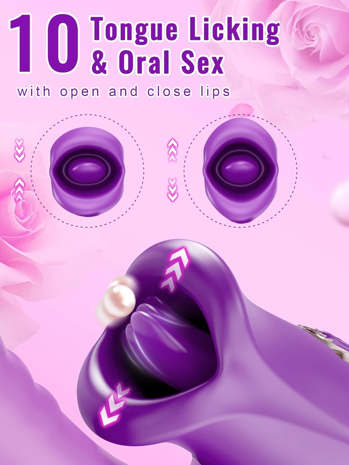 【Feature on 3D Silky Purple Lips Tongue & Curved Shaft with Conspicuous Ribs and Realistic Dilido】This 3 in 1 rose sex toy features a 3D purple mouth and tongue modeling. It offers an array of sensations via the mouth’s lips opening up and closing down and the tongue’s vibrations. Curved shaft with realistic glans and conspicuous ribs greatly increase friction, simulating the feeling of a real man. Our adult sex toys are designed to the clitoris and g spot boost your pleasure.