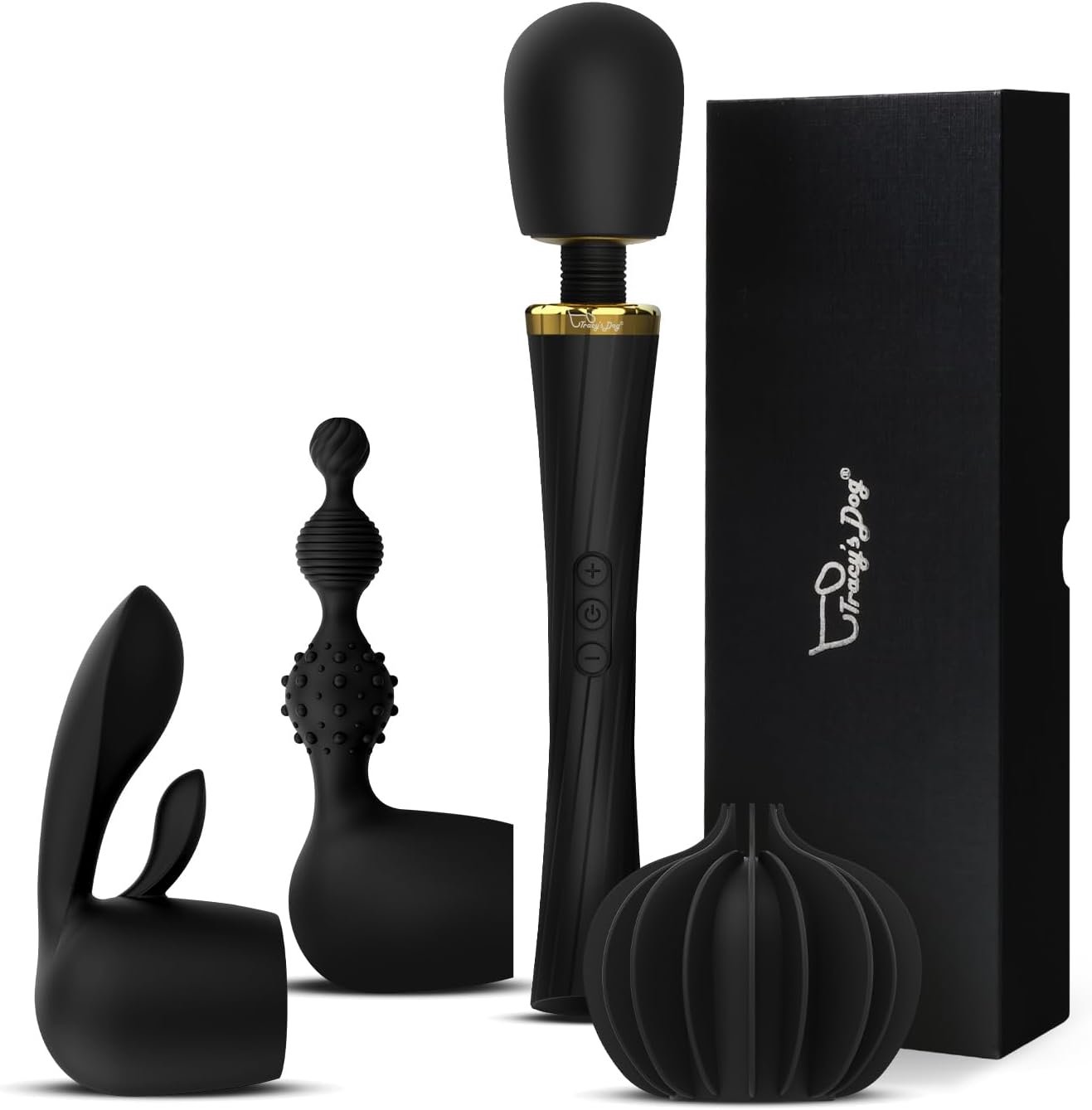 Tracy’s Dog Wand Vibrator Kit for Couples, Powerful Cordless Vibrating Wand with 3 Attachments for Clitoral, G-Spot & Anal Stimulation, 5 Vibration Modes & 3 Speeds, Adult Sex Toys for Women & Partner