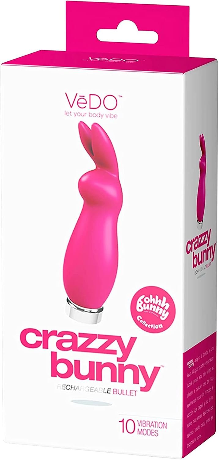 VeDO Crazzy Bunny Vibrator Bullet, Rechargeable Clitoral Adult Sex Toy, Clitoris Stimulator Vibe for Women (Pink)