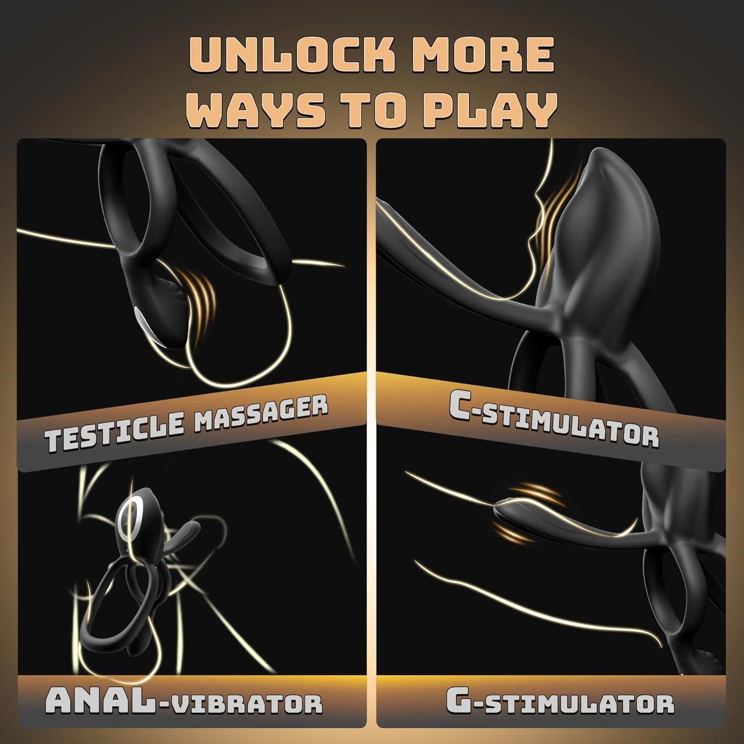 Multi-functional Vibrating Cock Ring: This 4 in 1 adult toy features vibrating cock ring structure with dual motors, delivering synchronized stimulation to G spot and clitoral areas through 10 vibration patterns for personalized intimacy enhancement.