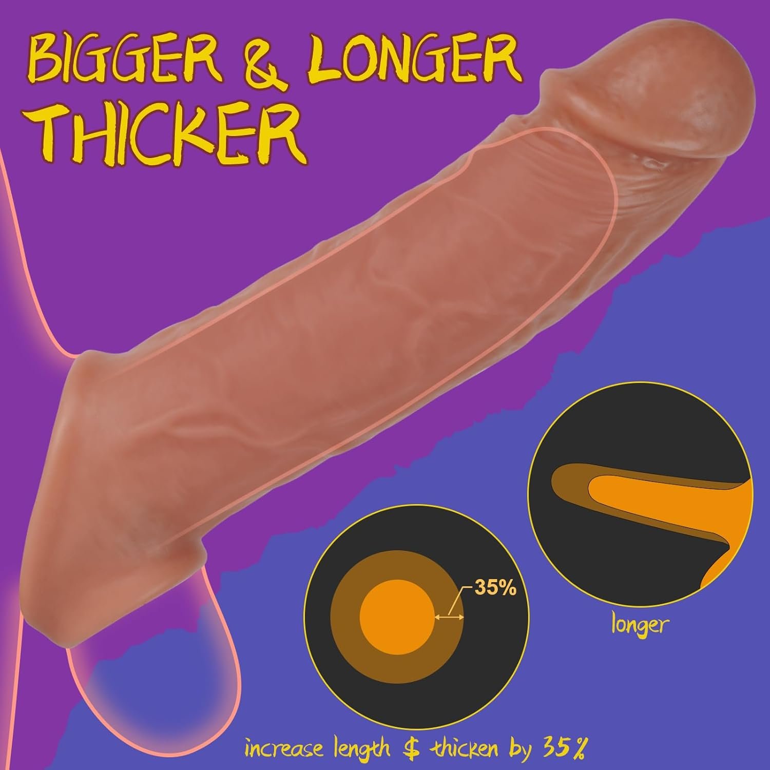 【Silicon Penis Sleeve With Realistic Texture】: Our penis enlarger stands out with its lifelike design and skin-like silicone texture. The realistic appearance, coupled with the premium quality soft silicone material, creates a seamless integration that enhances your comfort and pleasure. To ensure an even more enjoyable experience, we recommend applying lubricant before use.