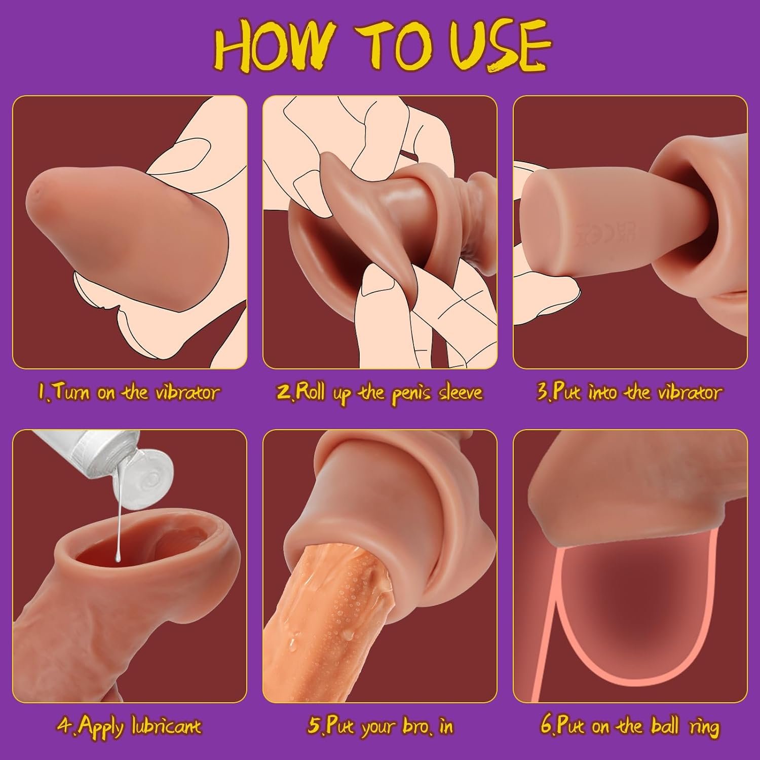 【Vibrating Penis Sleeve With Diverse Selection】: Our penis sleeve set offers three distinct styles to cater to your desires. Choose from the basic elastic penis ring, the vibrating sleeve without a ring, or the ultimate combination of a locking and vibrating sleeve. With our innovative design, the cock sleeve securely locks around the tip , providing intense stimulation. The penis ring promotes blood flow restriction, giving you a longer and firmer erection for prolonged ejaculation and a perfect experience. This diverse set of products will meet your various needs as much as possible and be more cost-effective.
