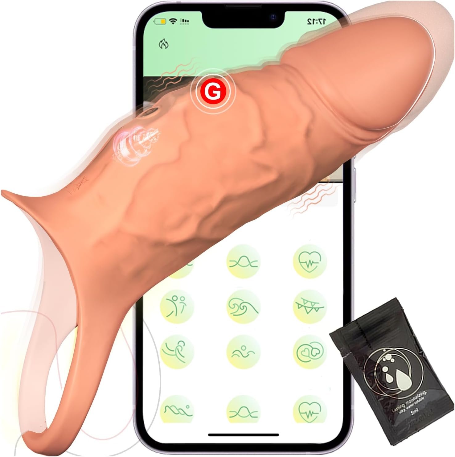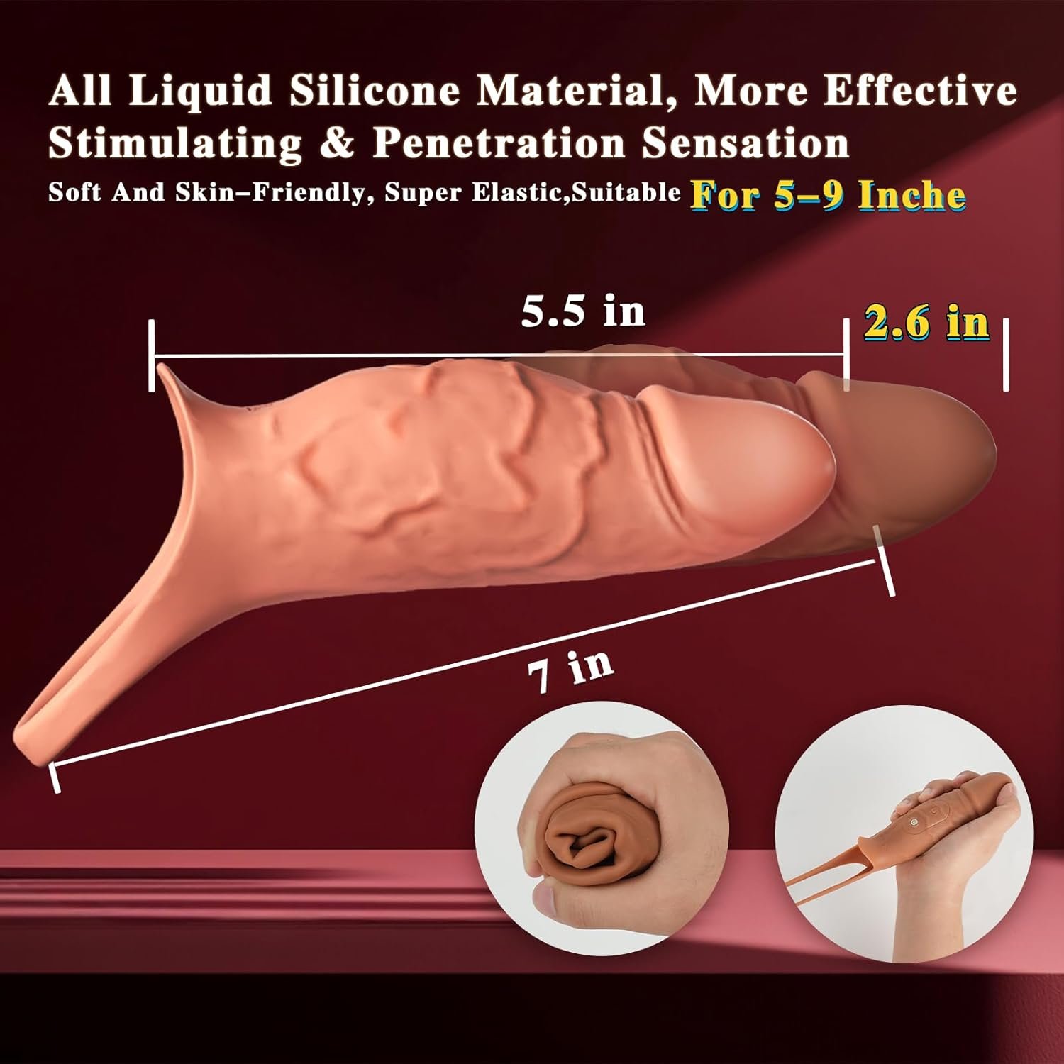 Vibrating Penis Sleeve Cock Ring, All Liquid Silicone Soft Couples Adult Sex Toys for Men Women, APP Penis Extender Vibrator Girth Enhancer Sleeve for Penis Testicles G Spot, LNIIY Male Couple Sex Toy