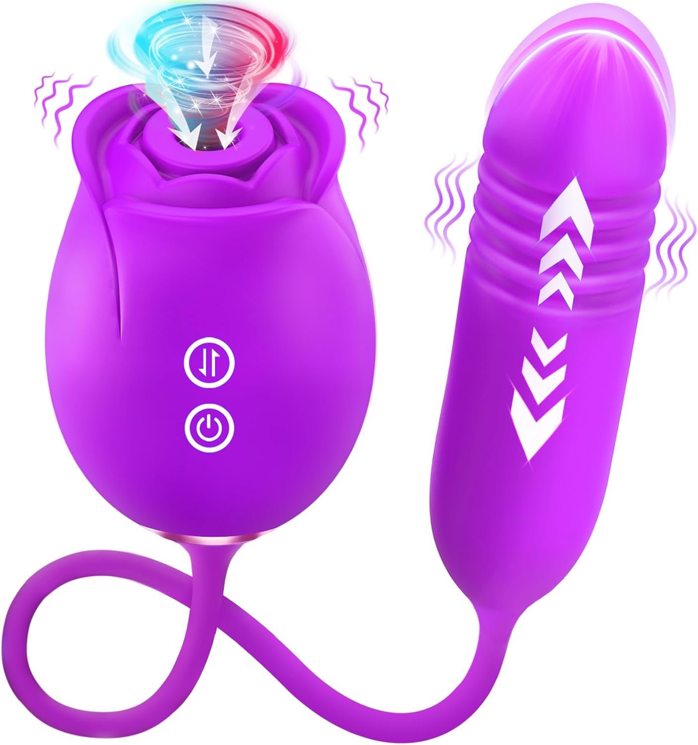 Versatile Rose Sex Toy for Women: The 3-in-1 rose vibrator combines sucking, vibrating and thrusting in a suction and a dildo, with separate controls. The ergonomic design of the sex toys ensures powerful sucking, easy insertion and precise stimulation
