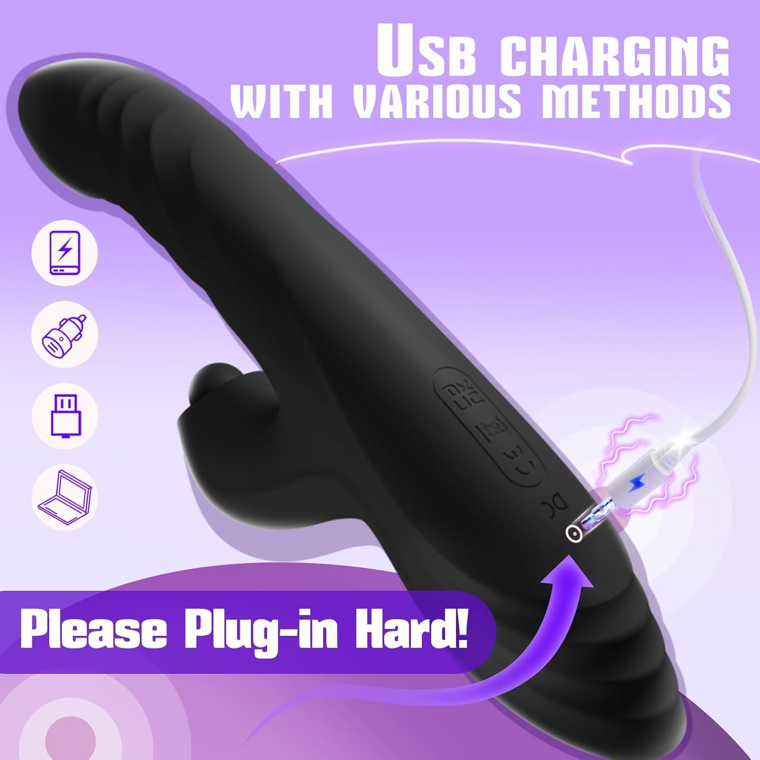 Vibrator Sex Toys for Women – Rabbit Vibrator with 10 Vibrating 7 Thrust Modes with Licking, G Spot Vibrator Clitoral Vibrators Adult Sex Toys for Womens Female and Couples Games Black Adult Toys
