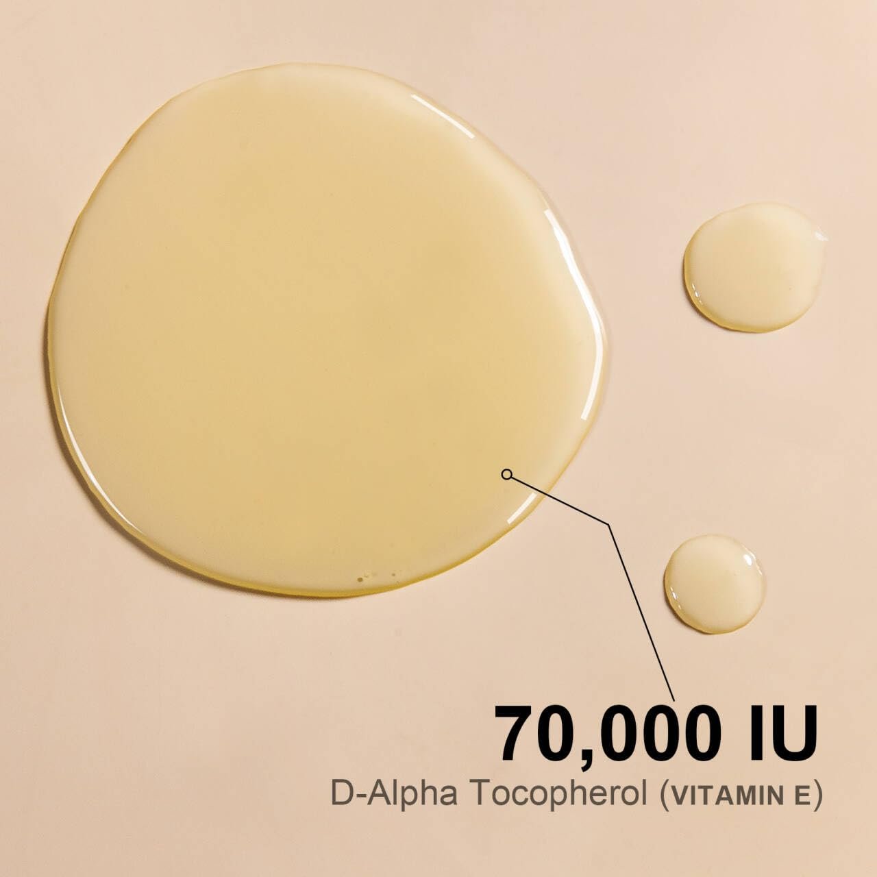 Vitamin E Oil 8 Fl Oz Organic Vitamin E oil for Skin 70,000 IU Vitamine oils for Scars Hair,Face,Nail,Scalp Perfect Bath and Body Oil Cold Pressed Hexane Free Non-GMO Gluten Free Formula