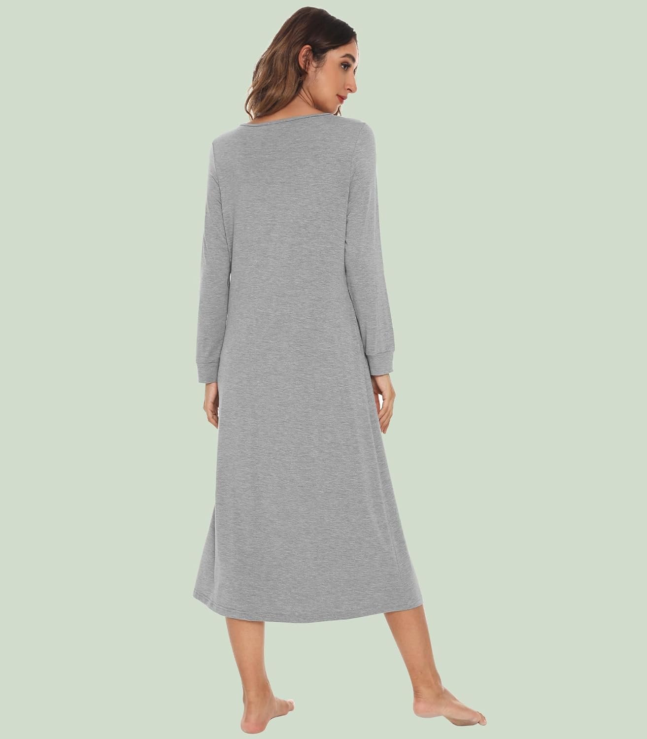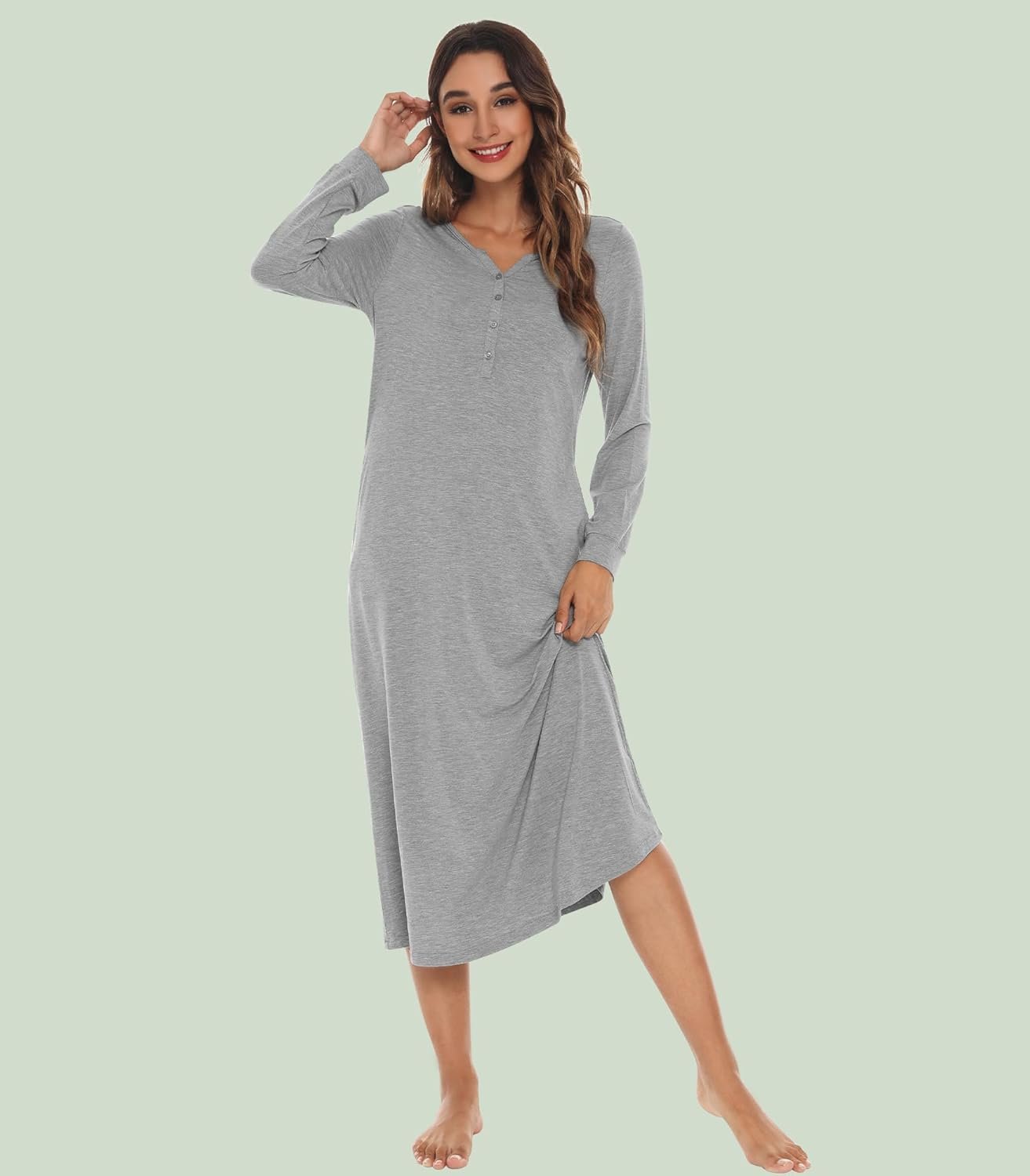 WiWi Nightgowns for Women Super Soft Sleepwear Long Sleeve V Neck Nightshirts Viscose from Bamboo Cooling Nightdress S-XXL